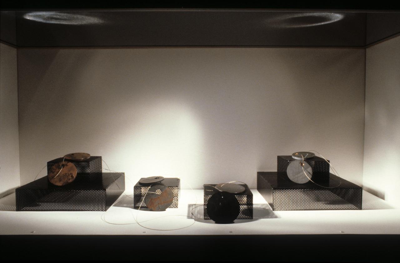 This exhibition presents a selection of recent works by four leading designer-makers: Kate Durham, Rowena Gough, Carlier Makigawa and Margaret West. Each according to her own distinctive style shows an intense engagement with ideas and emotions within the intimate medium of jewellery. With respect to materials and techniques, their conspicuous departure from the expected in fact serves the traditional values of jewellery making — a sensitivity to the individual physical characteristics of materials and to the nature of jewellery as an art which relates to the body.