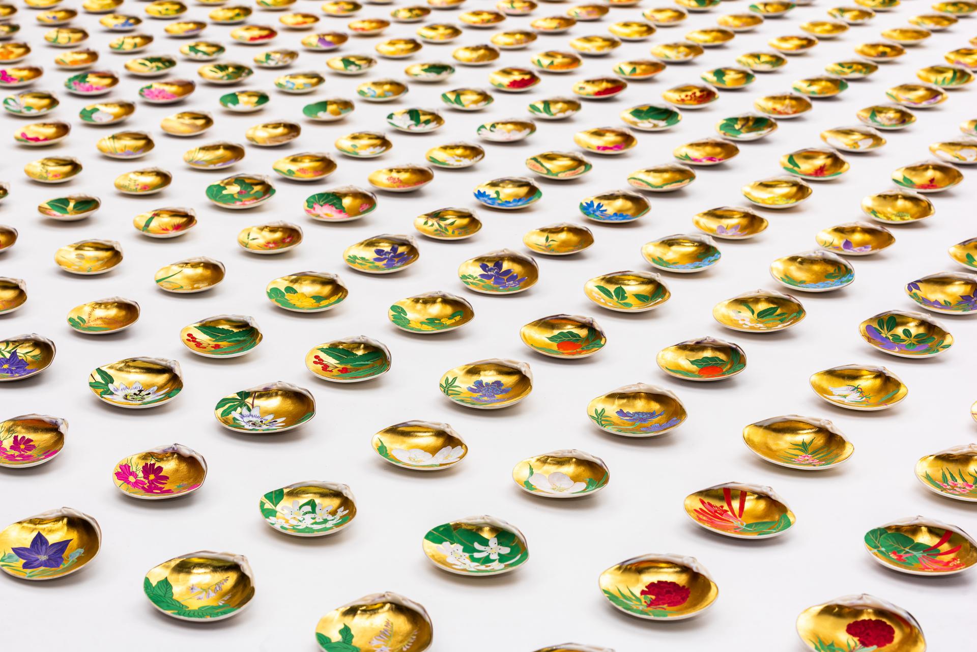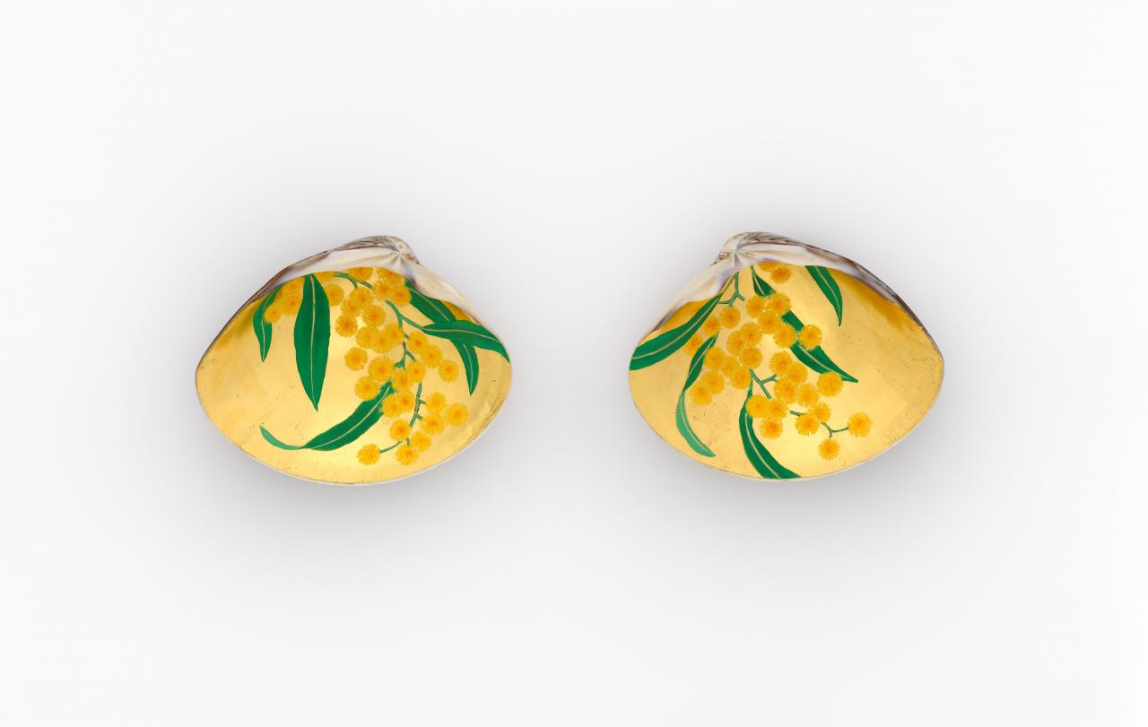 The beauty and artistry of the historical Japanese ‘shell matching’ game kai-awase is celebrated in a new exhibition at the centre of which is a contemporary 720-piece set commissioned by Melbourne philanthropist Dr Pauline Gandel AC. Comprising two Japanese lacquerware shell boxes and 720 gilded clam-shaped shells, each decorated with hand-painted Japanese and Australian flowers, this new edition of the game is the only complete example known to be in existence and provides audiences with a rare opportunity to admire the craftsmanship behind this centuries-old pastime.