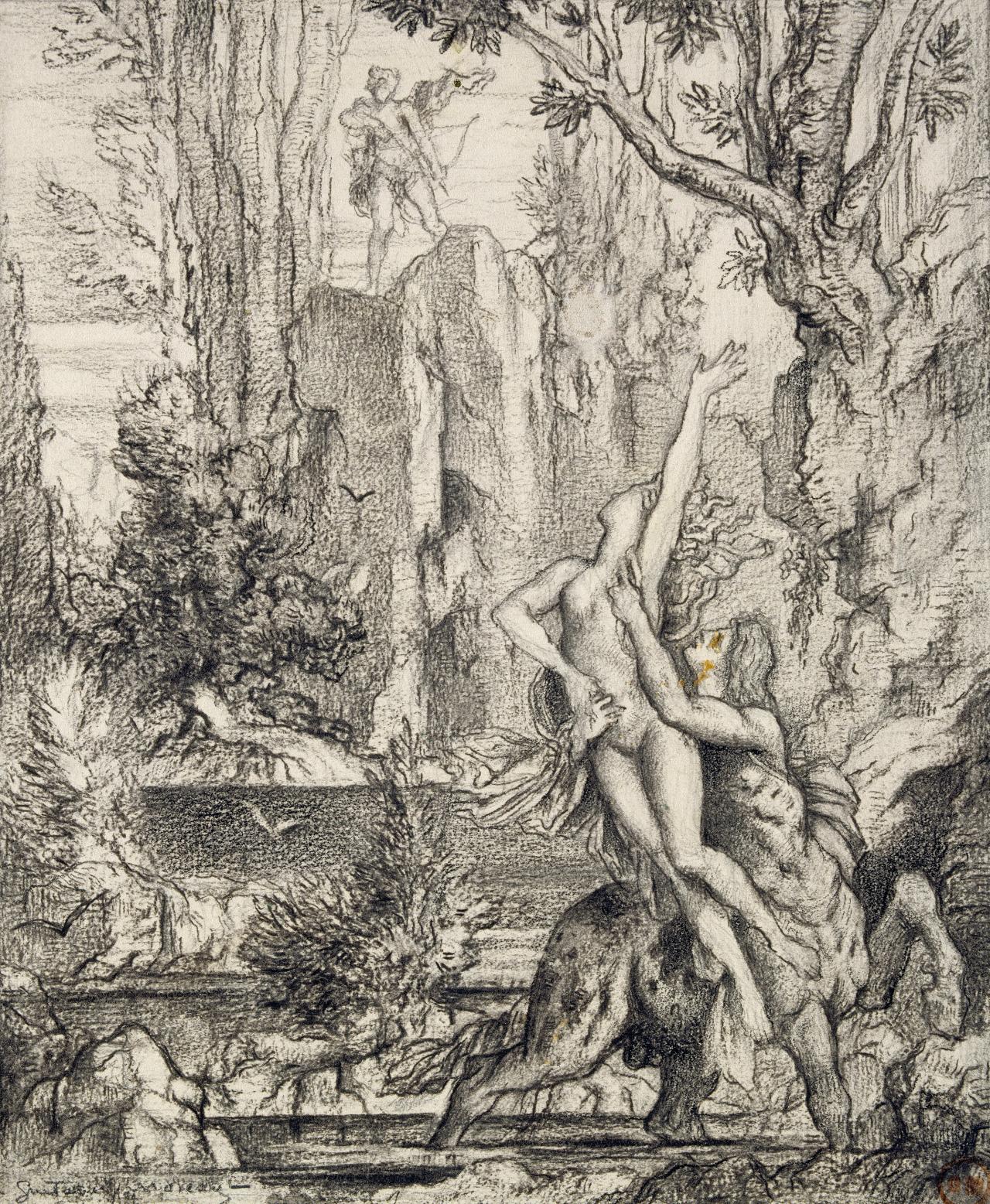 Gustave Moreau is one of the radical artists of the nineteenth century whose imagination seems to anticipate the cinematic. His art is one of spectacle and alive with fabulous stories. Unique in his own time, especially for painting the great mythological and exotic stories of the ancient world, erotic and often violent, Moreau’s painterly bravura is vivid, his colour dazzling and jewel-like. At times he applies paint and uses mixed media with a freedom verging on the abstract – so that he seems to possess a modern sensibility.