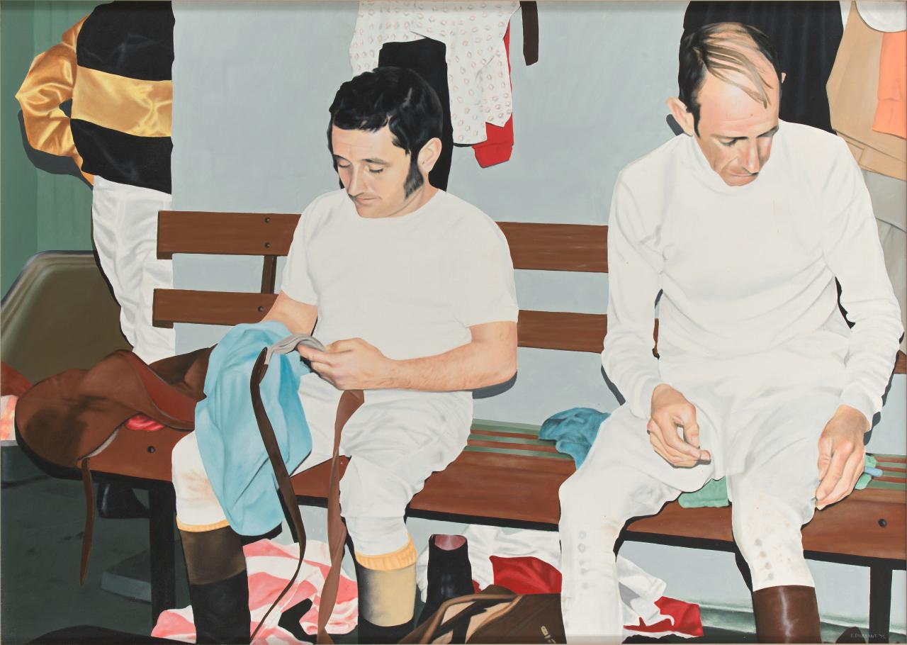 Durrant’s career spans close to five decades. During this time he has produced a remarkable body of work. His most recent paintings have been dubbed ‘supraphotolism’, a term coined to describe a style of working that goes beyond ‘super-realism’ or photorealism’s accurate mimicking of the photograph. Ivan Durrant: Barrier Draw traces the evolution of Durrant’s extraordinarily diverse artistic career. It includes his earliest folk paintings made in response to his childhood experiences of country life; the realist paintings, short films and sculptures of the 1970s and 80s, including his popular race track and movie star series; his controversial and politically motivated performance works – through to his evocative ‘soft-focus’ shed, football and racing paintings of the 1990s and 2000s. In addition to existing works, Durrant has produced a new larger-than-life sculpture to astonish visitors to the exhibition.