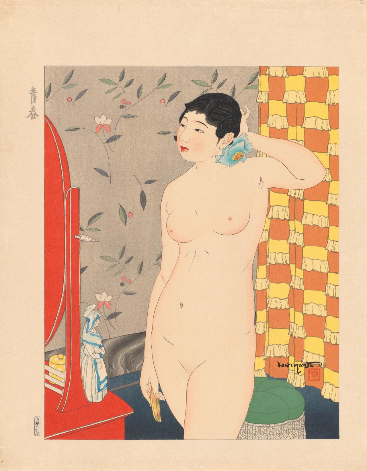 The exhibition features major works by young female artists of the era and rare large-scale paintings by young Japanese artists and modernist colour prints produced with the refined techniques of traditional ukiyo-e. The exhibition also features fashion of the era, including women’s and men’s kimonos and related accessories. Popular culture and interior design will be represented with beautifully crafted glassware, lacquer ware and bronze ware, as well as street posters, magazines and graphic design.