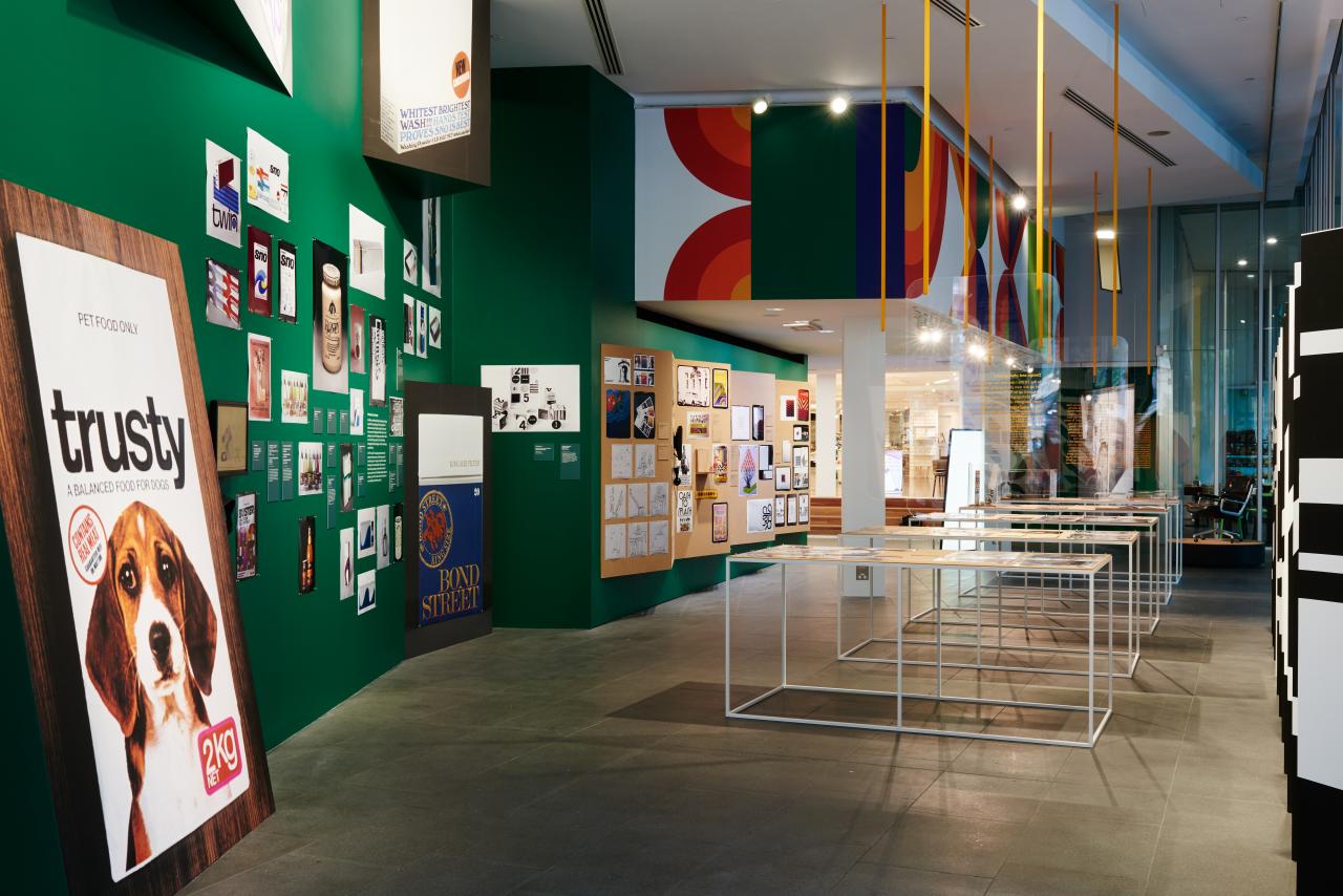 Drawing on a rich archive, much of Mason’s work has been reproduced for this exhibition spanning a diverse array of projects across packaging, corporate identity, advertising, architectural graphics, and magazine.