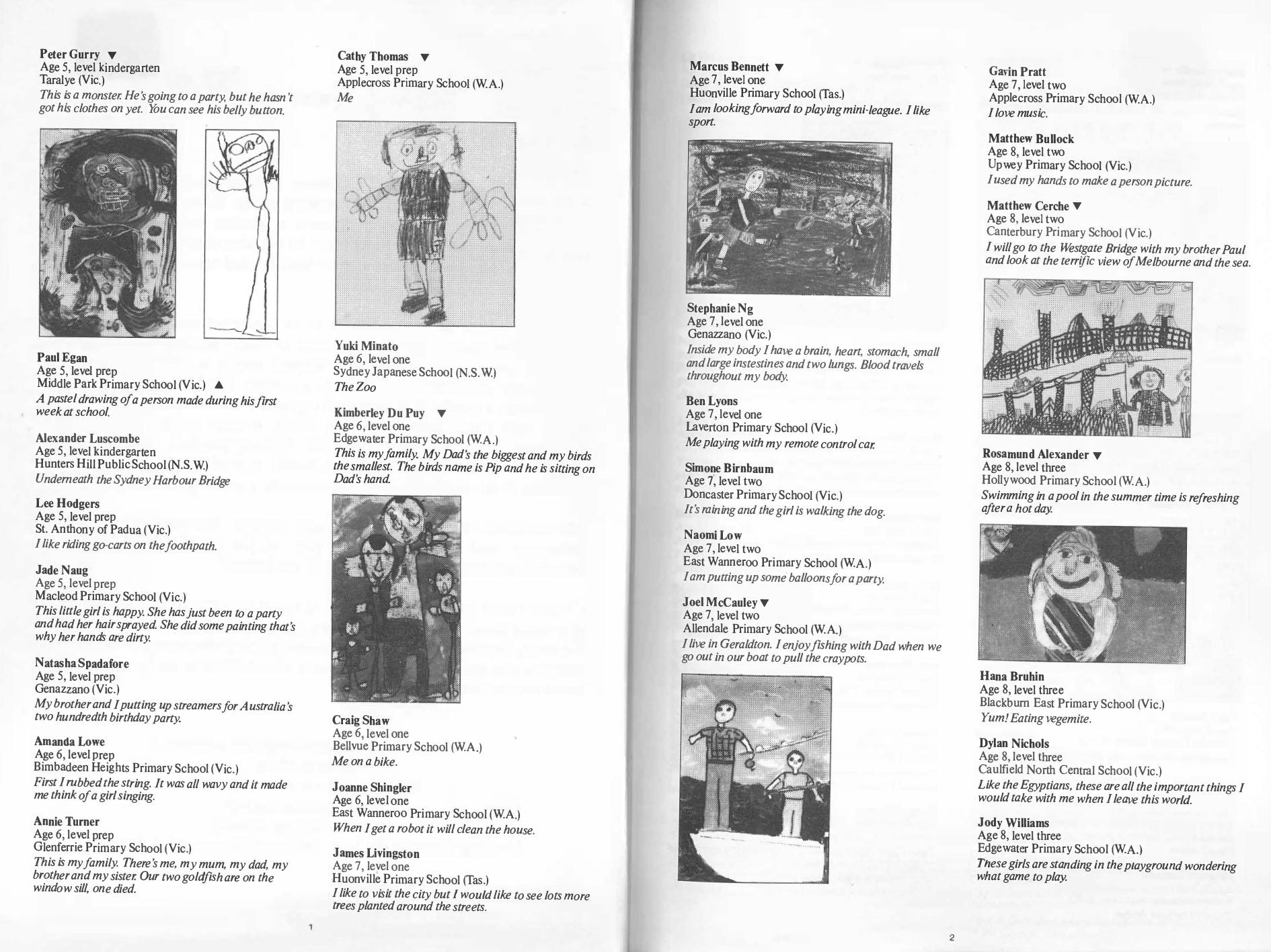 Children have a remarkable knack of being able to capture the significant, to reveal a passion or to pursue a new discovery with refreshing enthusiasm. Whatever the next two hundred years may bring we can rely on students for candour and spontaneity in expressing their concerns and responses to the world around them.