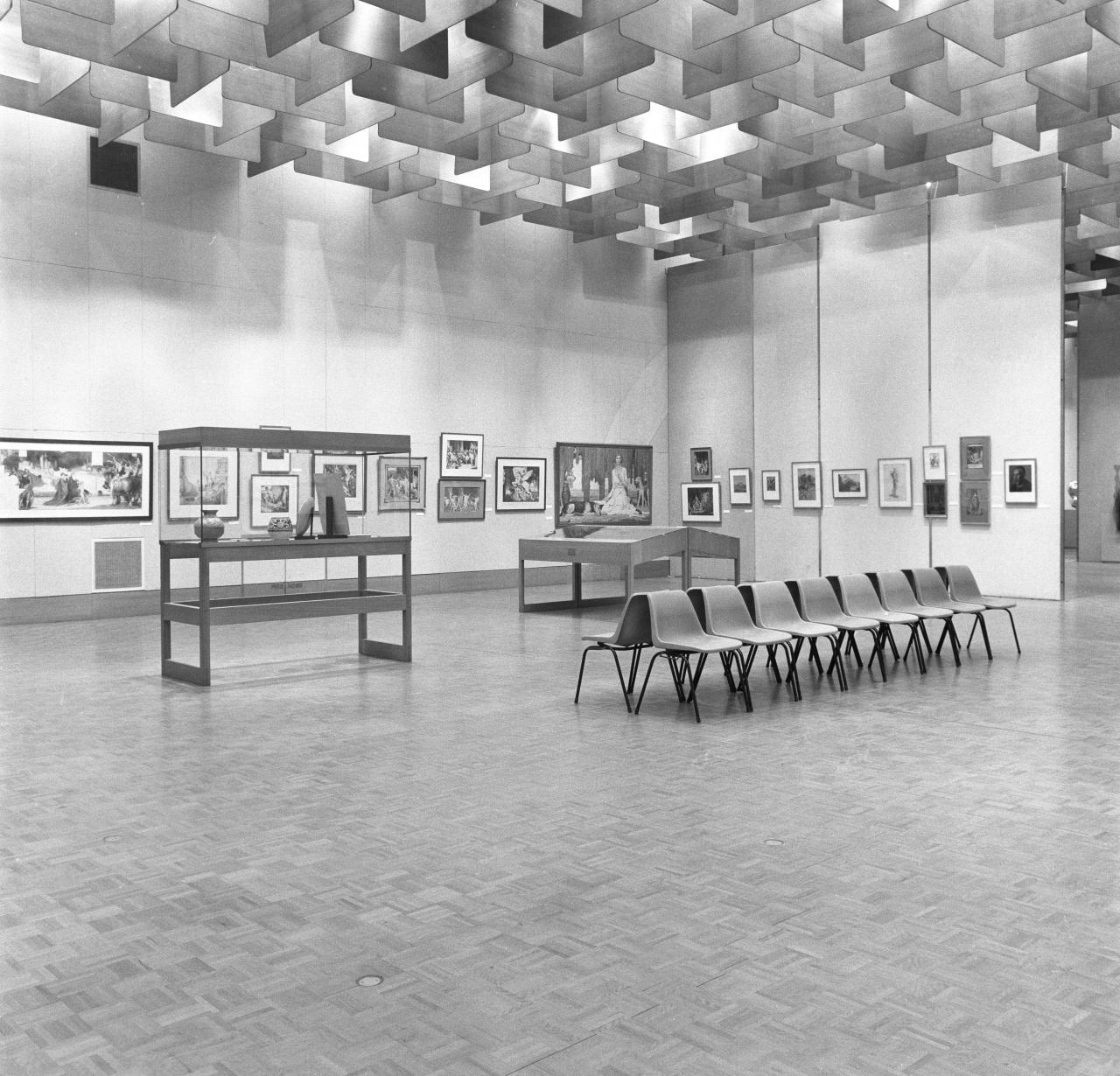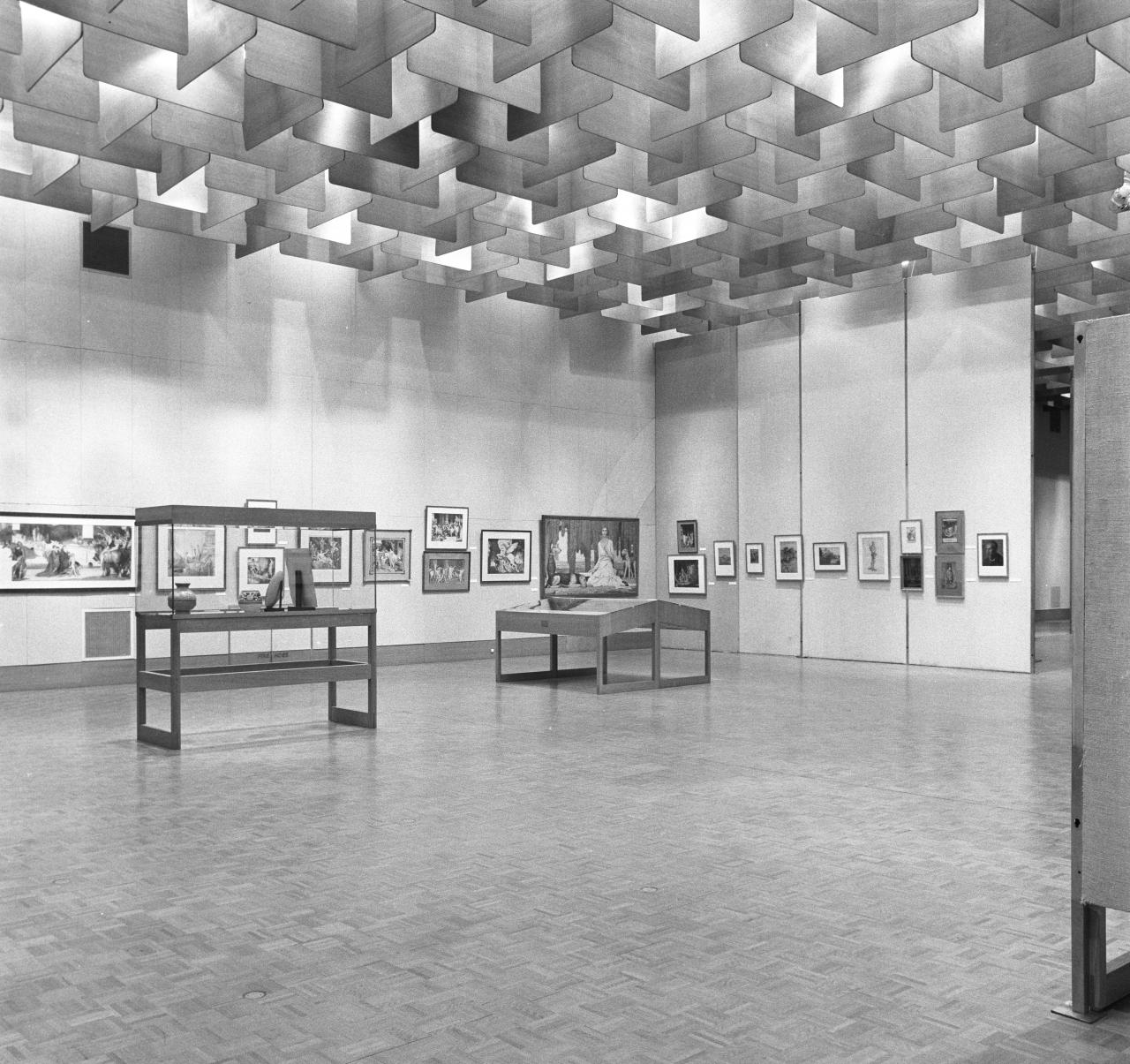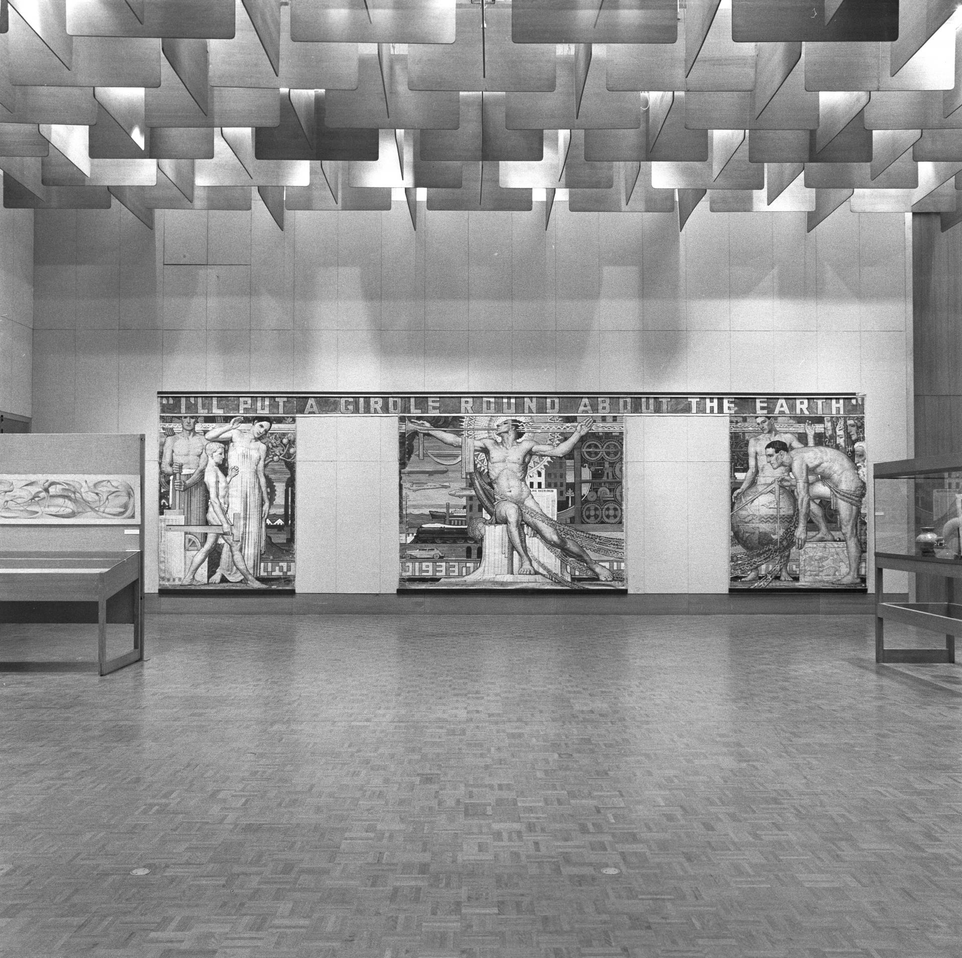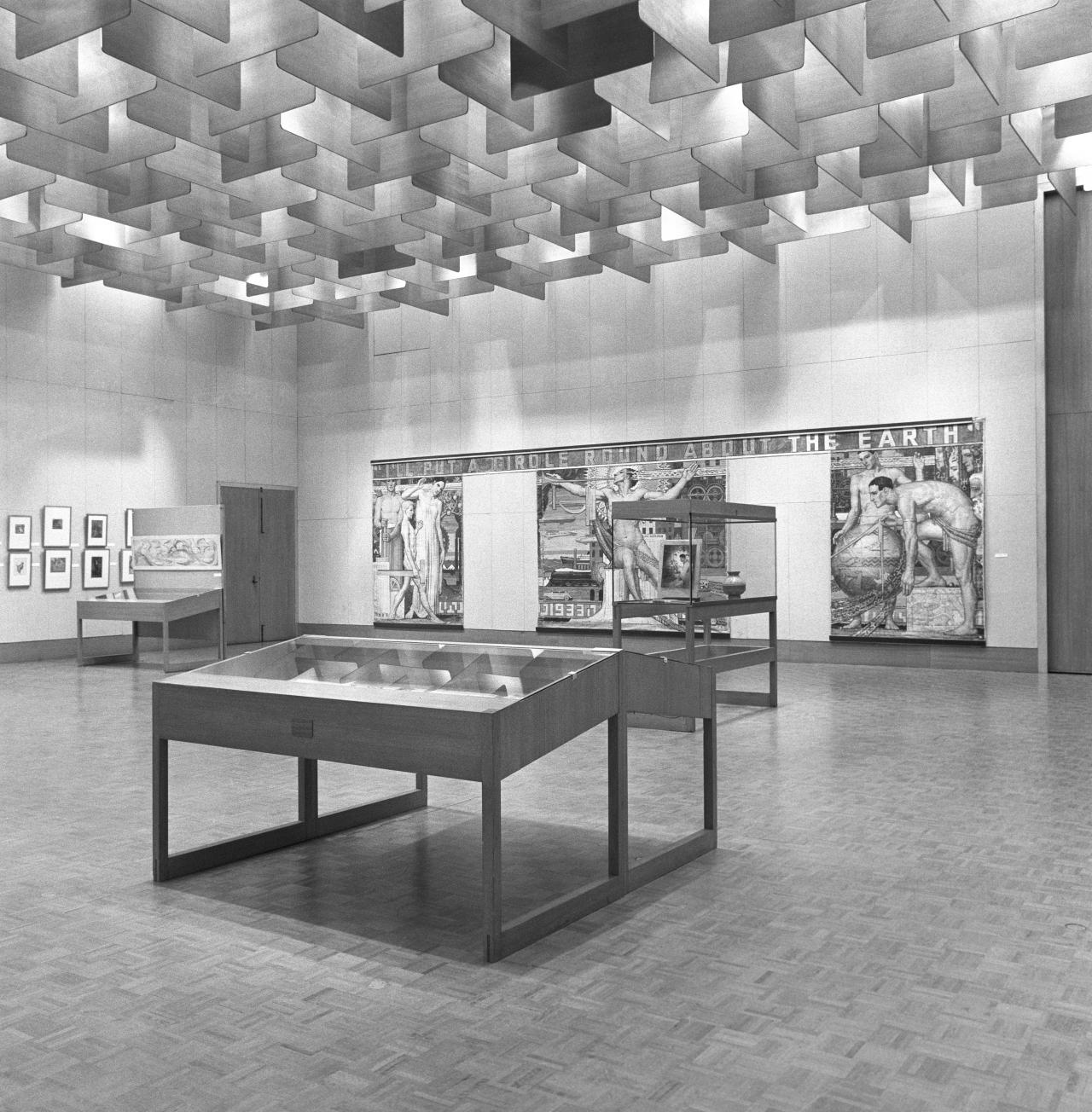 This major exhibition took place five years after his death in 1972 and featured sixty works, including large murals, mosaics and stained-glass works that were displayed alongside smaller prints and drawings in the NGV’s famed Featherstone display cabinets.