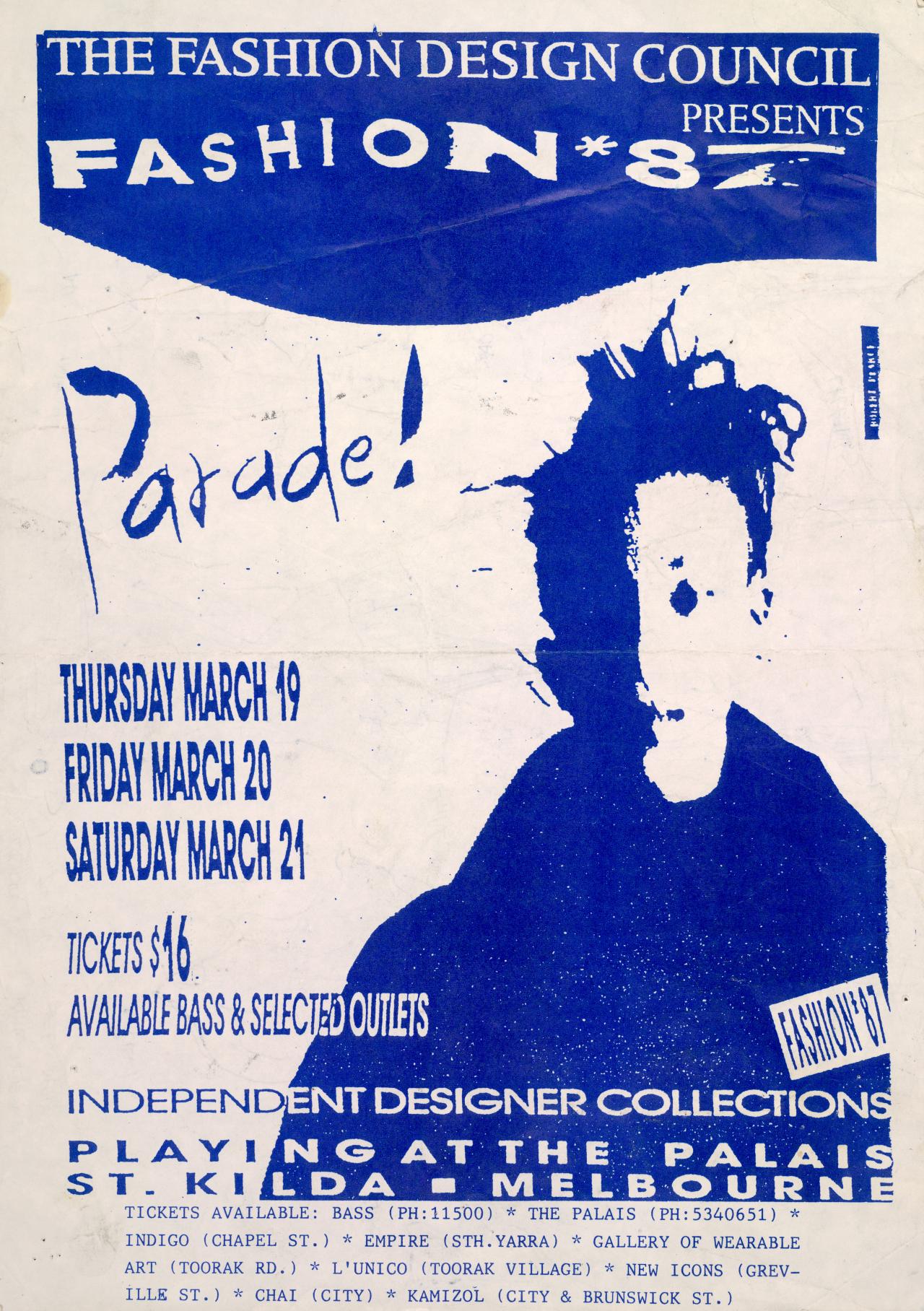 In 1981, at the age of sixteen, Grant left home and school in Melbourne’s suburban Blackburn to explore life in the city. A short time later, he established his own label and studio, joining the creative throng of milliners, art directors, painters, fashion magazines, model agencies and rock bands spilling from the studios and offices of Stalbridge Chambers at 443 Little Collins Street. Along with his fellow Stalbridge residents, Grant regularly presented his designs in the iconic parades staged by the Fashion Design Council (FDC), a non-profit organisation established by the Victorian state government in the early 1980s.