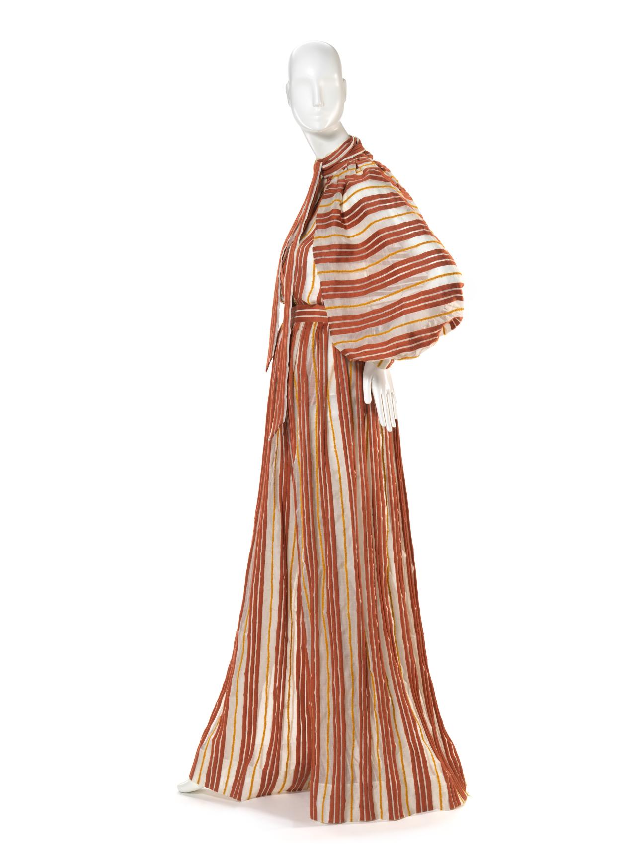 The creative relationship with Dale started with her creating an array of hats in straw and sculpted felt to finish Grant’s silhouettes. When looking back at this time, Dale particularly admires ‘the way that [Grant] structured his business and working life… merging lifestyle, friendships and work. It was a really good introduction to being able to live that life, an artistic life.’