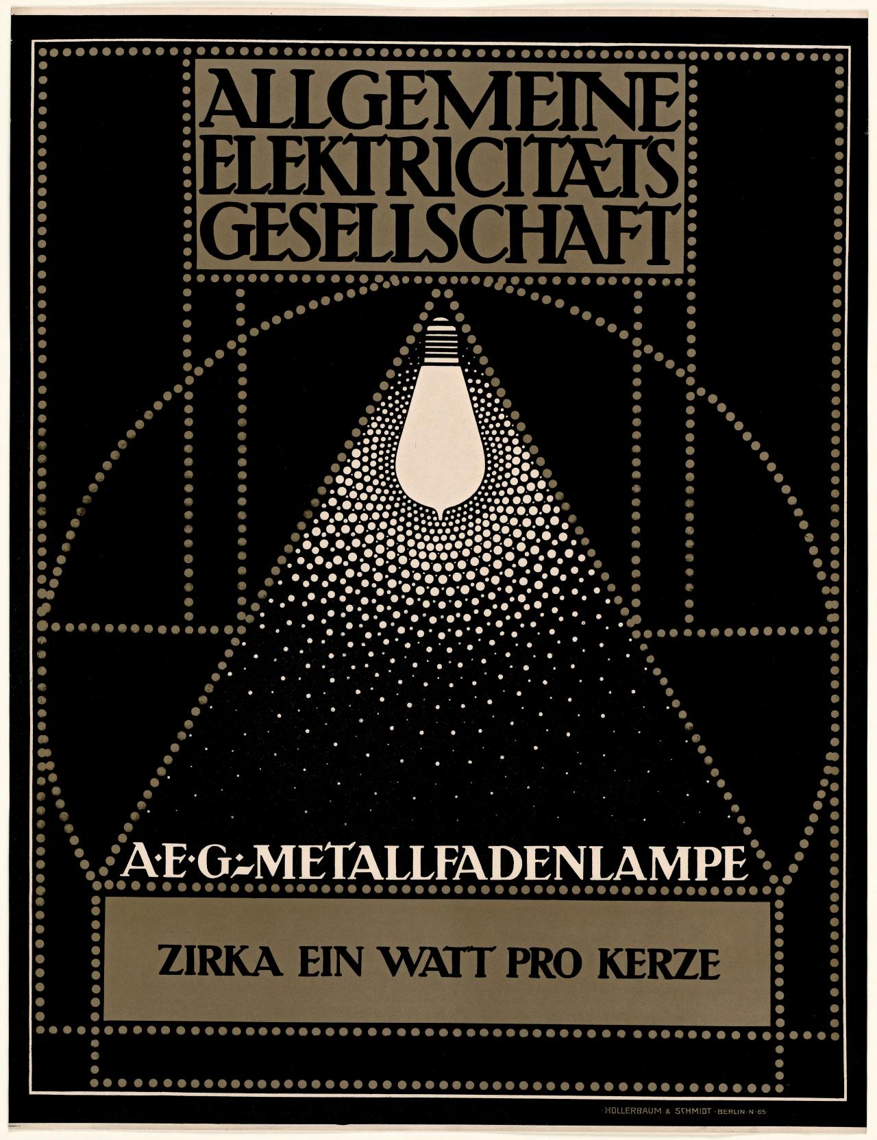 At the same time, other artists revelled in portraying the spectacle culture of rapidly growing cities: Eugène Atget’s photographs, Jules Chéret’s posters, a painting by Henri de Toulouse-Lautrec and a film by Auguste and Louis Lumière all capture the media and movement of a newly wired Paris. The designs of Berlin-based Peter Behrens – industrial objects as well as the branding conceived to promote them – similarly speak to the electricity of the age.