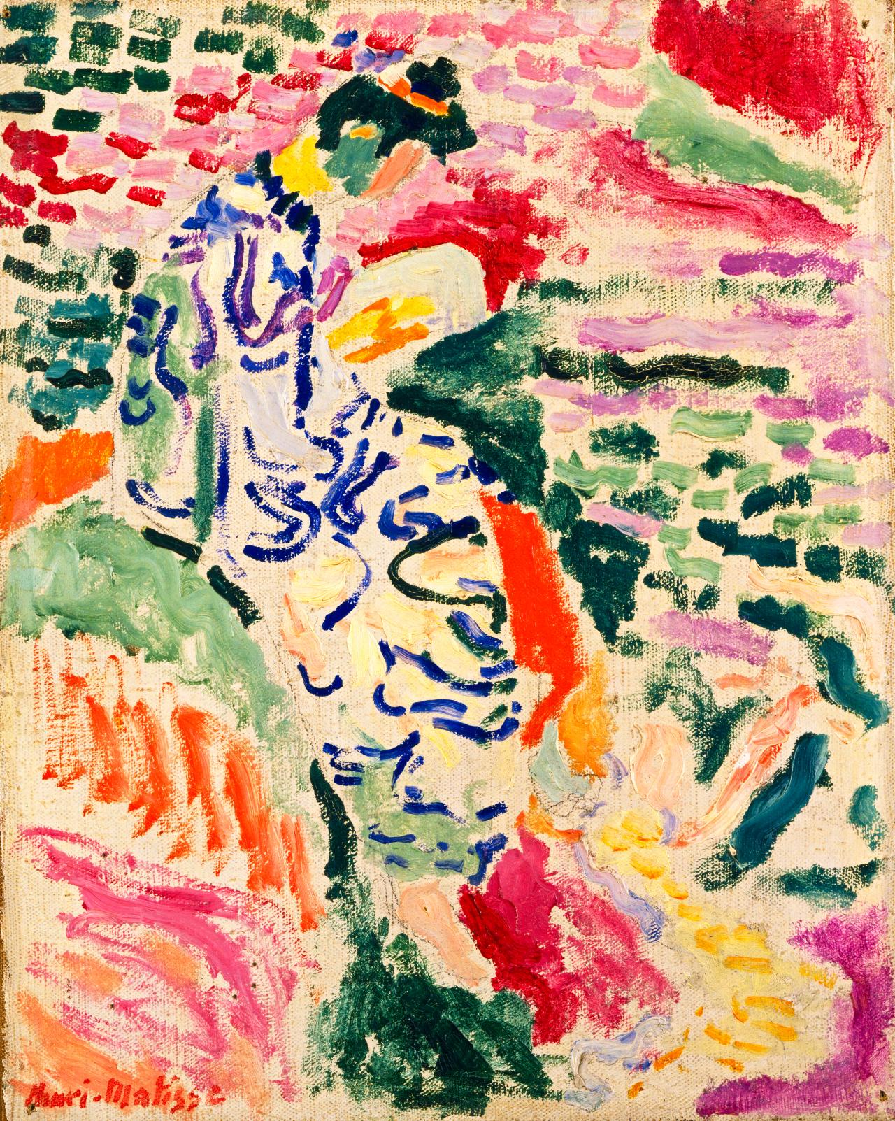 Post-Impressionist painters were among those who continued to create within established academic genres, seen here in a portrait by Vincent van Gogh, a landscape by Georges Seurat and a still life by Paul Cézanne. But if these artists’ subjects were traditional, their techniques were wholly inventive, including sinuous brushstrokes, divisionist dots and flattening facets adopted as a way to reject illusionism. Others mined non-Western cultures for fresh inspiration; paintings by Paul Gauguin and Henri Matisse in this gallery, for example, look to Tahiti and Japan, respectively, for their figures and forms.