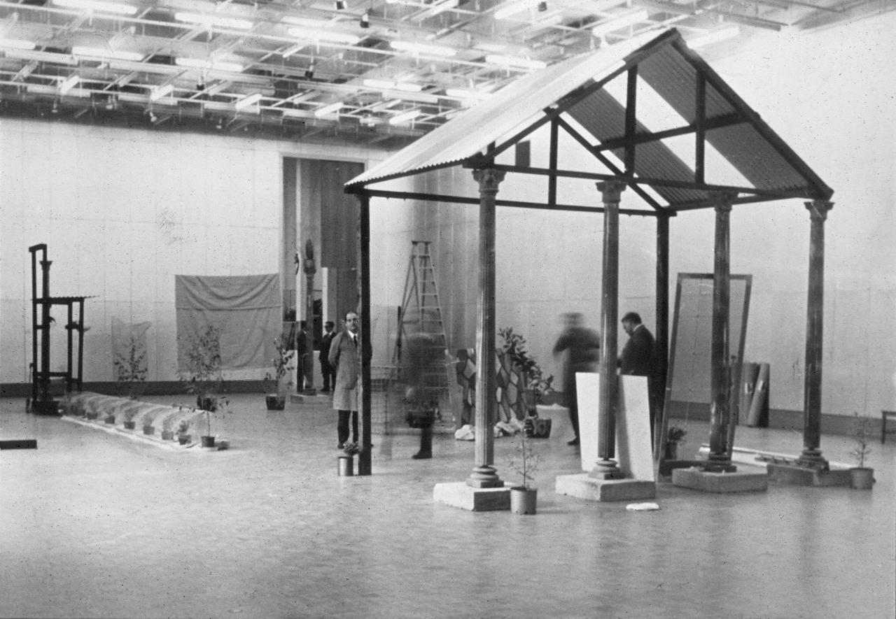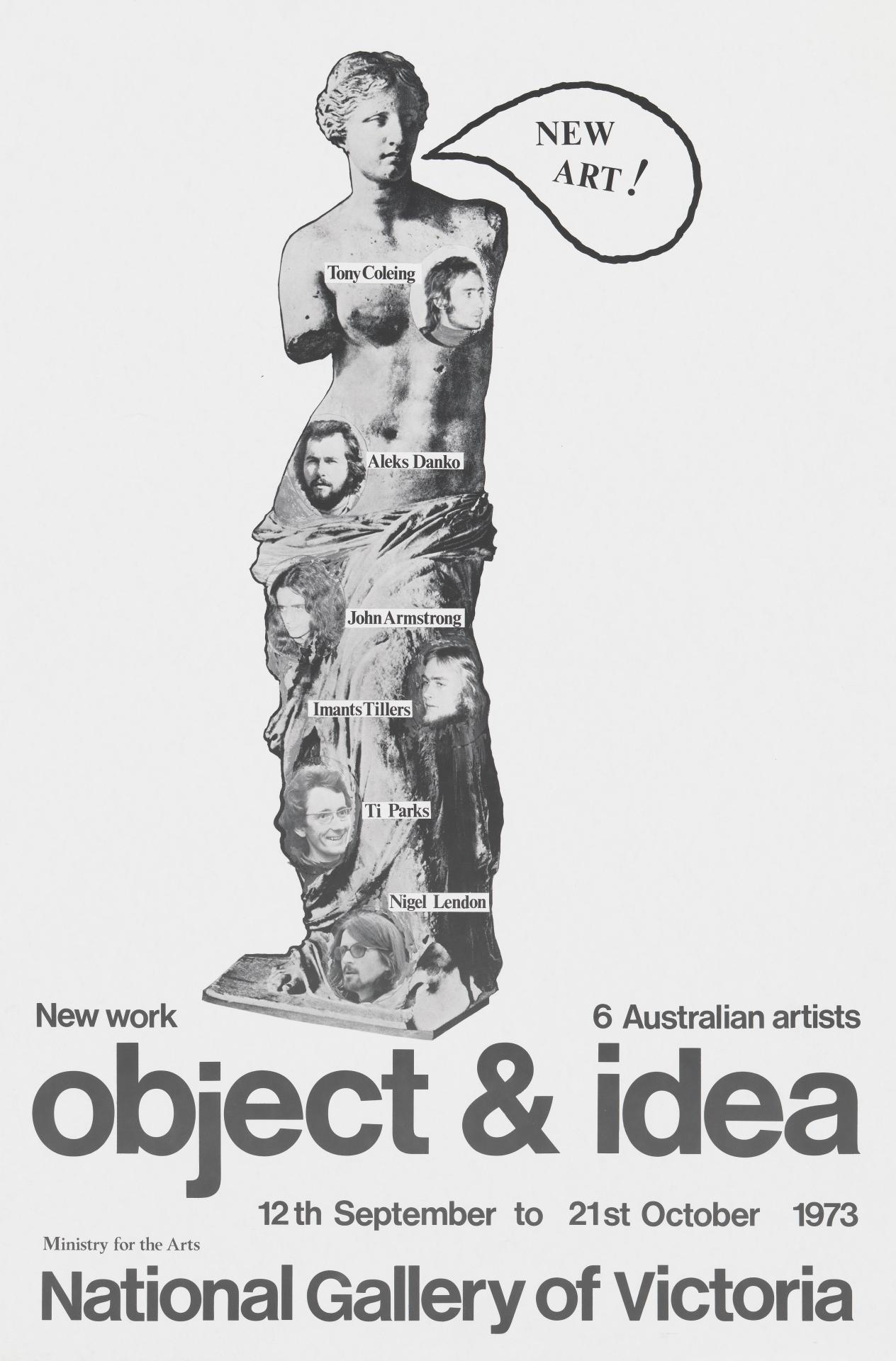 Collecting is not the only possible role of a public gallery in the support of its contemporaries. Perhaps it is not even a proper one? It may be argued that if the art is relevant i.e. useful to its society that’s where it shoud be; not in the unnecessary care of a museum. To exhibit the serious, unquestioning work of our contemporaries may be more useful to the artist and to the community. Thus it seems appropriate to examine a direction in Australian Art, by showing new work of six young artists: John Armstrong, Tony Coleing, Aleks Danko, Nigel Lendon, Ti Parks and Imants Tilliers. The career and attitude of each is adumbrated in photographs and text: The six exhibits are portrayed and described. The Department of Australian Art conceived this exhibition. The Department of Exhibitions has been its busy midwife.