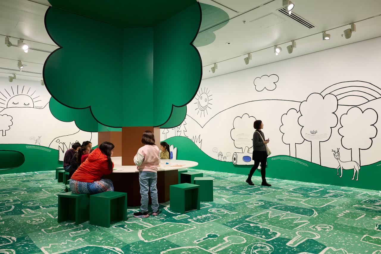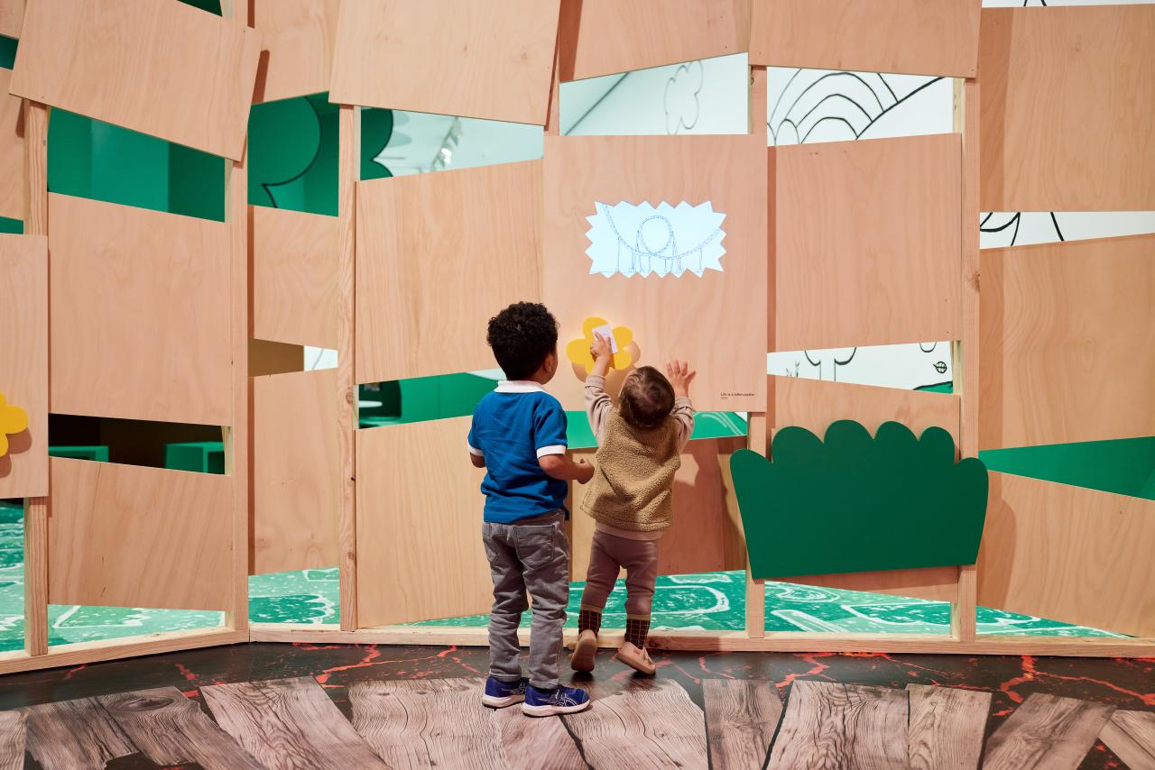 Artist Olaf Breuning presents an adventure playground for kids to explore, be creative and share their point of view on their world. Throughout the exhibition, children can interact with animated drawings by the artist, create their own drawings, learn about the natural world, and read Olaf’s first book for kids while nestled in a reading nook.