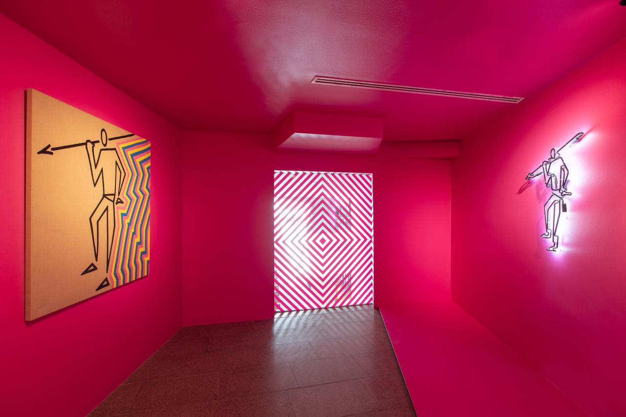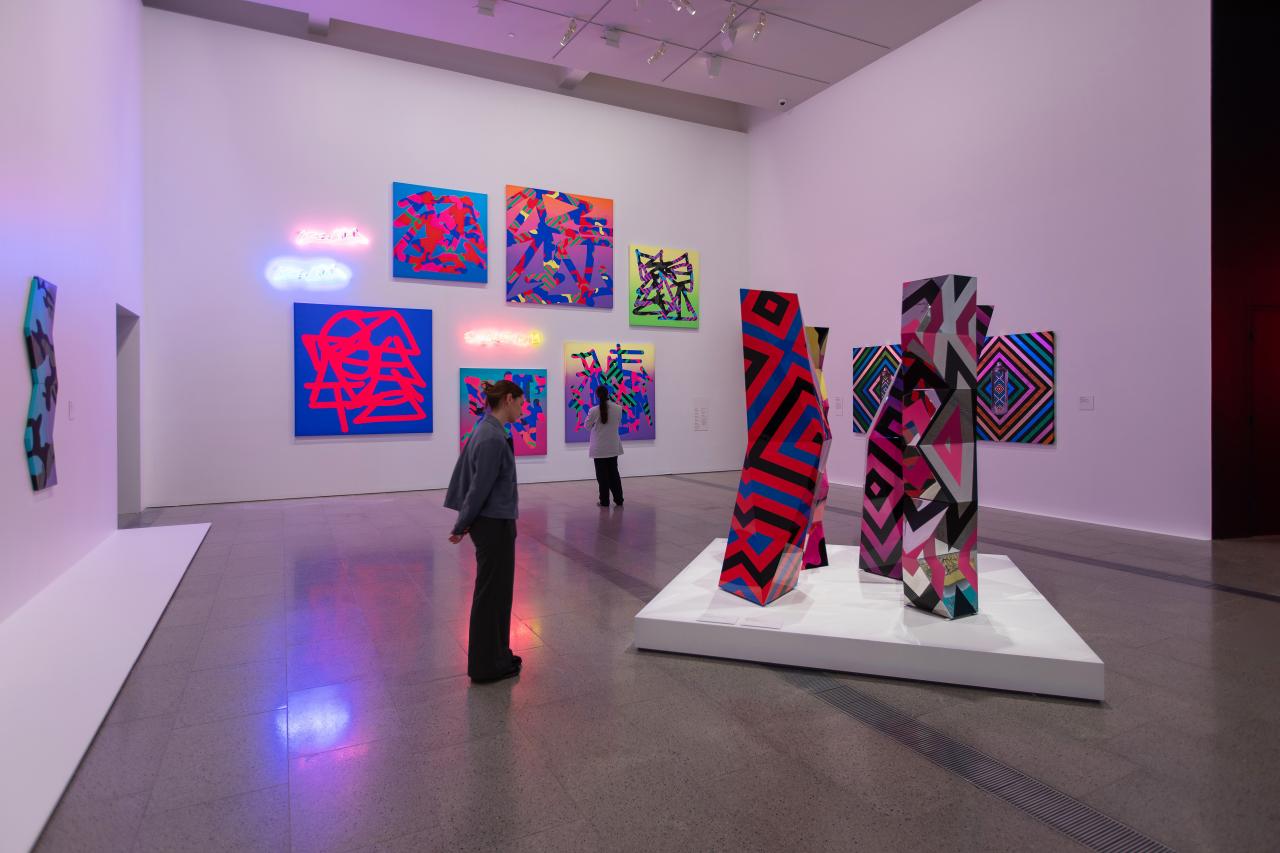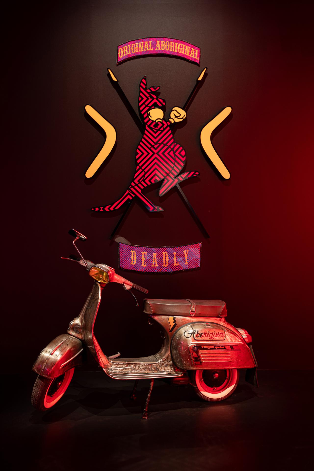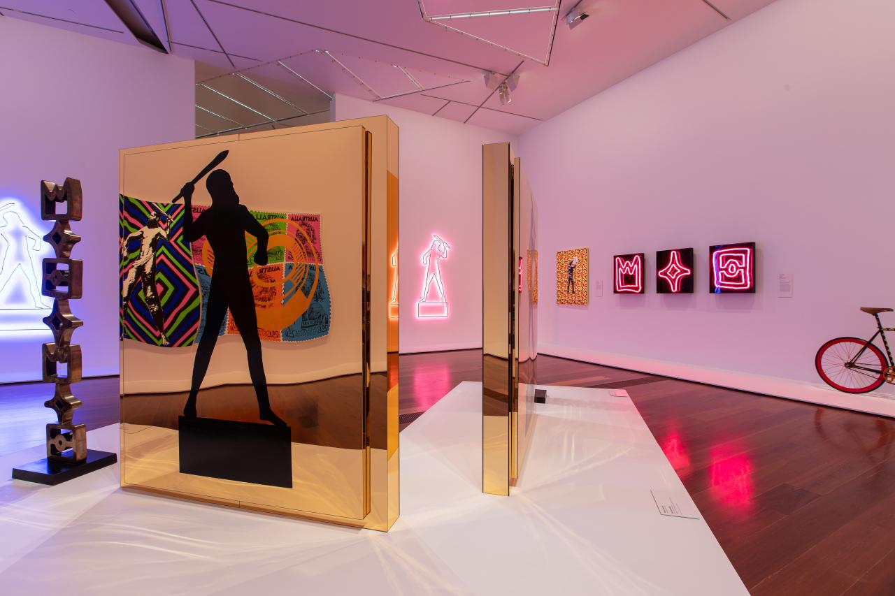 REKOSPECTIVE is an immersive exhibition that charts the bold and dynamic practice of renowned Kamilaroi artist, Reko Rennie. The exhibition resists a conventional chronological sequence, allowing audiences to freely navigate the intersection between culture, politics and identity from a contemporary First Nations perspective.