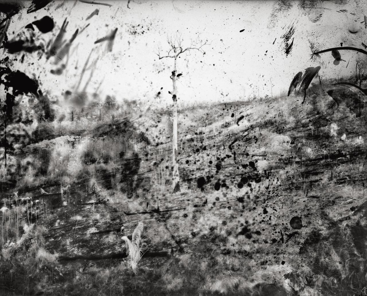 An image captured by the artist’s custom-built multispectral video camera mounted to the nose of an aircraft and flown over Yanomami Territory in Roraima, on the Brazil-Venezuela border. The artist worked with a machine-vision spectronomy engineer to build the camera, which emulates remote sensing cameras in satellites that monitor the Earth’s environment. It is a digital multi-sensor array involving beam splitters, which captures discrete narrow bands of spectral reflectance in a very specific range, only around ten or twenty nanometers each, reflected off the earth below. GIS scientists use this technology to reveal very specific environmental information, such as ecological degradation, which is expressed as colour. The Uraricoera River in Yanomami Territory has been overrun by at least 20,000 illegal gold miners (garimpeiros) in recent years, who illegally mine deep within protected Yanomami ancestral territory, often pressing vulnerable Indigenous people to work in the mines or as prostitutes, while spreading diseases such as malaria and diarrhoea. The river itself is devastated by the extractive violence of widespread hydraulic mining and gold dredges, turning the water a milky light blue. The water itself carries mercury, a by-product of the mining process, poisoning aquatic life and all who live off it, including Indigenous communities.