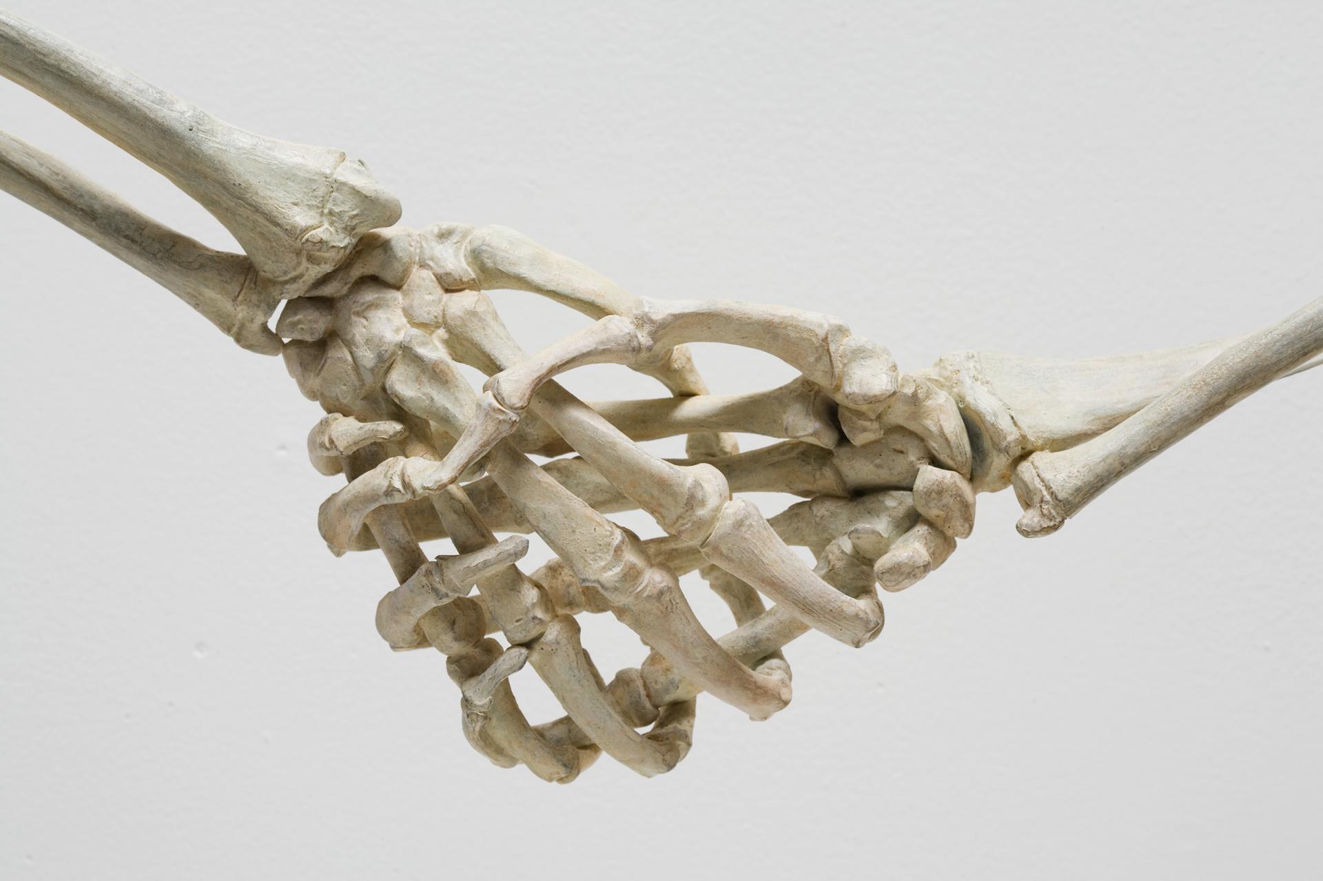 Tusk, 2007 among several other works in the exhibition, explores the theme of body as fragment. Much has been discussed about Swallow’s use of the skeleton as a form rich in meaning within both the traditions of art history as well as popular culture (references range from the Medieval dance macabre and the memento mori of the still life tradition to the skeleton in rock music and skateboard art iconography). Tusk represents two skeletal arms with the hands clasped together in eternal union. A poignant work, Tusk is a meditation on permanence: the permanence of the human body even after death; the permanence of the union between two people, related in the fusion of the hands into that timeless symbol of love, the heart.