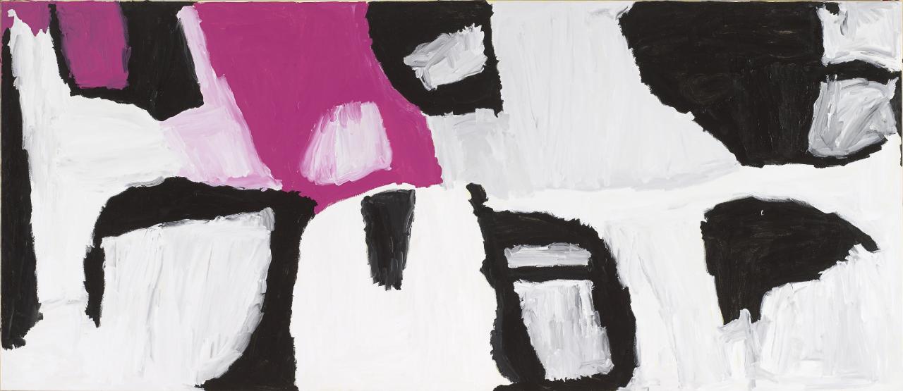 The exhibition Mirdidingkingathi Juwarnda Sally Gabori: Dulka Warngiid – Land of All traces the stylistic trajectory of Gabori’s oeuvre, encompassing her earliest small-scale canvases of 2005, iconic large-scale collaborative works with other Kaiadilt women, her singular monumental canvases of daring colour juxtapositions, through to her almost monochromatic paintings and works on bark produced at the end of her career.