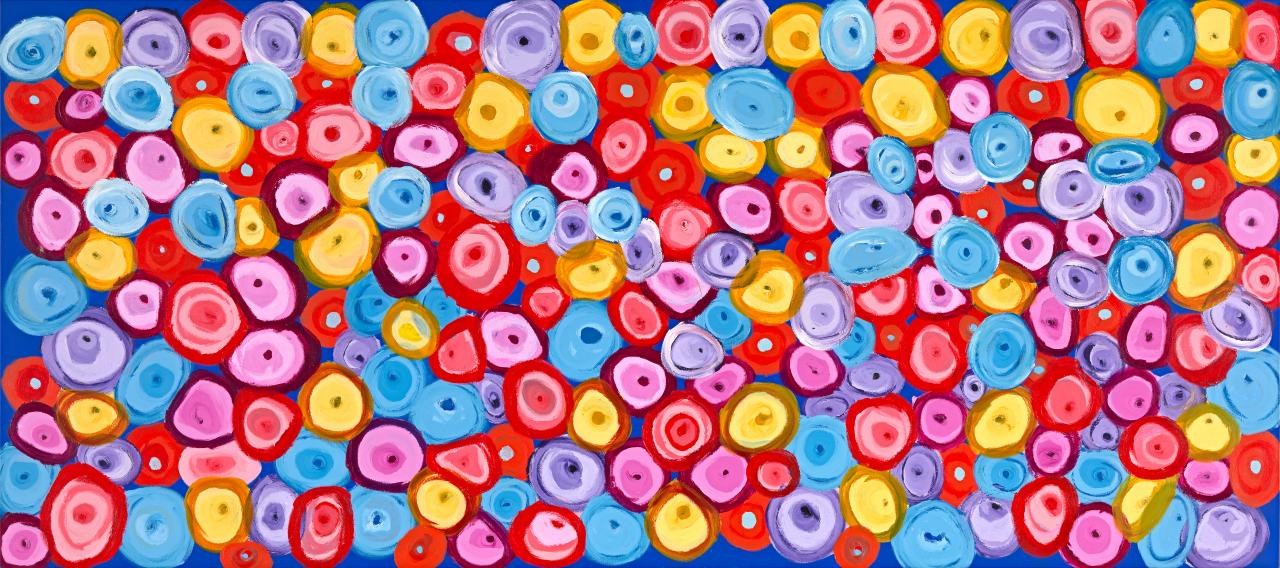 This retrospective survey and celebration of the life and work of Mirdidingkingathi Juwarnda Sally Gabori c.1924–2015 features over thirty works on loan from Queensland Art Gallery | Gallery of Modern Art, Brisbane. Gabori was a contemporary artist of considerable sophistication and dare and a distinguished senior Kaiadilt woman artist from Bentinck Island in the Queensland’s Gulf of Carpentaria. Her indefatigable zeal to communicate her stories, knowledge, and experiences accumulated over an incredible life — spanning over 90 years — won her great admiration and has left an astonishing cultural legacy.