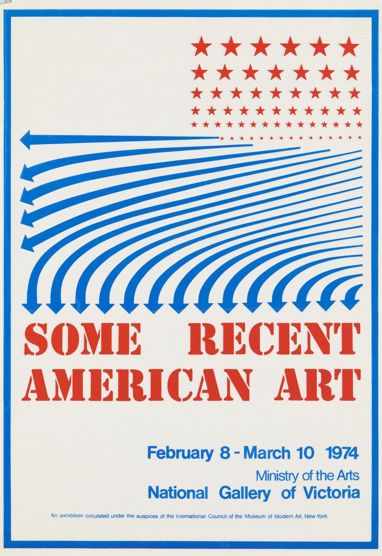 The showing in Melbourne inaugurates an extended tour. Over the next twelve months, the exhibition will be shown in Perth, Sydney and Adelaide, passing then to New Zealand before returning to New York. The exhibition was selected by Ms Jennifer Licht, Associate Curator at the Museum of Modern Art, New York. Our special thanks are due to her for this and for preparation of the catalogue material. We are deeply indebted to the many artists, collectors and dealers who graciously permitted their works to be away for a year.