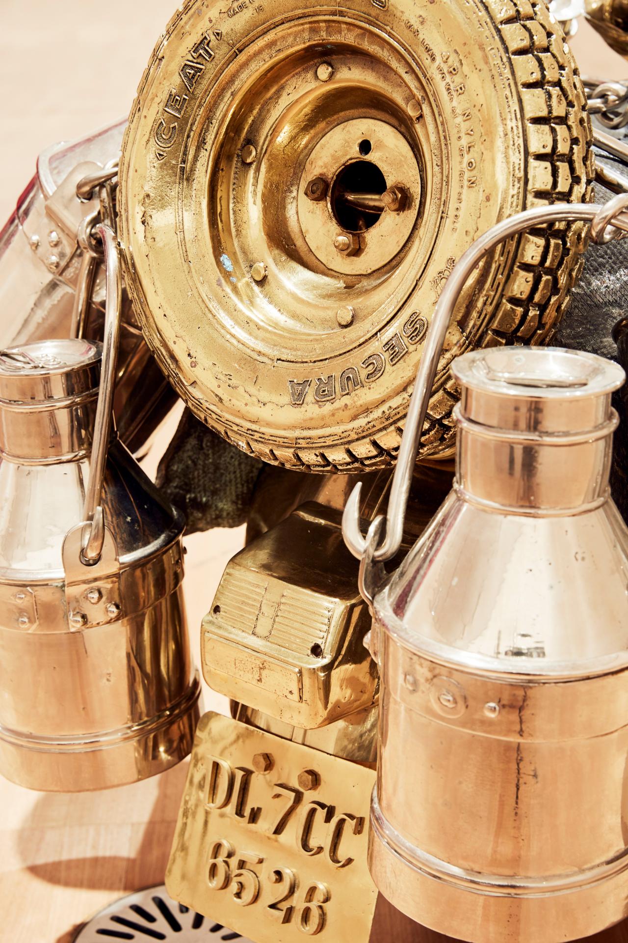 Celebrating the vestiges of everyday life for many Indians and elevating the objects found in domestic and street life to a position of spiritual worship is at the heart of Gupta’s practice.