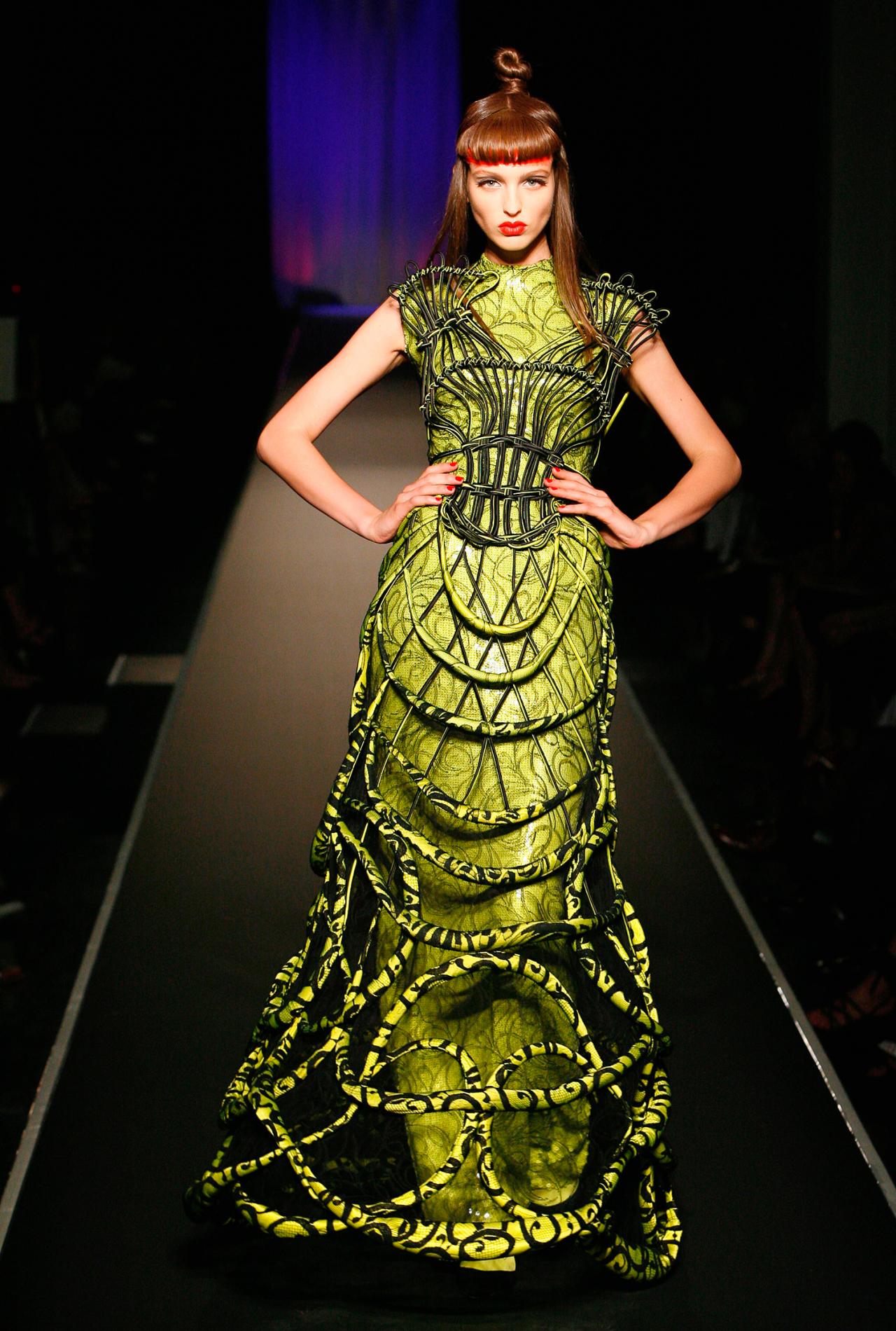 Gaultier designs costumes for the Pedro Almodóvar film The Skin I Live In. End of the partnership with Hermès. The Catalan group Puig becomes the majority shareholder in the House of Jean Paul Gaultier. Launch of the Kokorico men’s fragrance and the Jean Paul Gaultier layette line. The first exhibition celebrating the designer’s thirty-five-year career is organized by the Montreal Museum of Fine Arts (June 2011). The exhibition later travels to the Dallas Museum of Art (November 2011), the Fine Arts Museums of San Francisco, de Young (March 2012), the Fundación Mapfre – Instituto de Cultura in Madrid (October 2012), the Kunsthal Rotterdam (February 2013), the Arkitekturmuseet in Stockholm (June 2013), the Brooklyn Museum in New York (October 2013), the Barbican Centre in London (April 2014), the National Gallery of Victoria in Melbourne (October 2014), the Galeries nationales du Grand Palais in Paris (April 2015) and the Kunsthalle der Hypo-Kulturstiftung in Munich (September 2015).