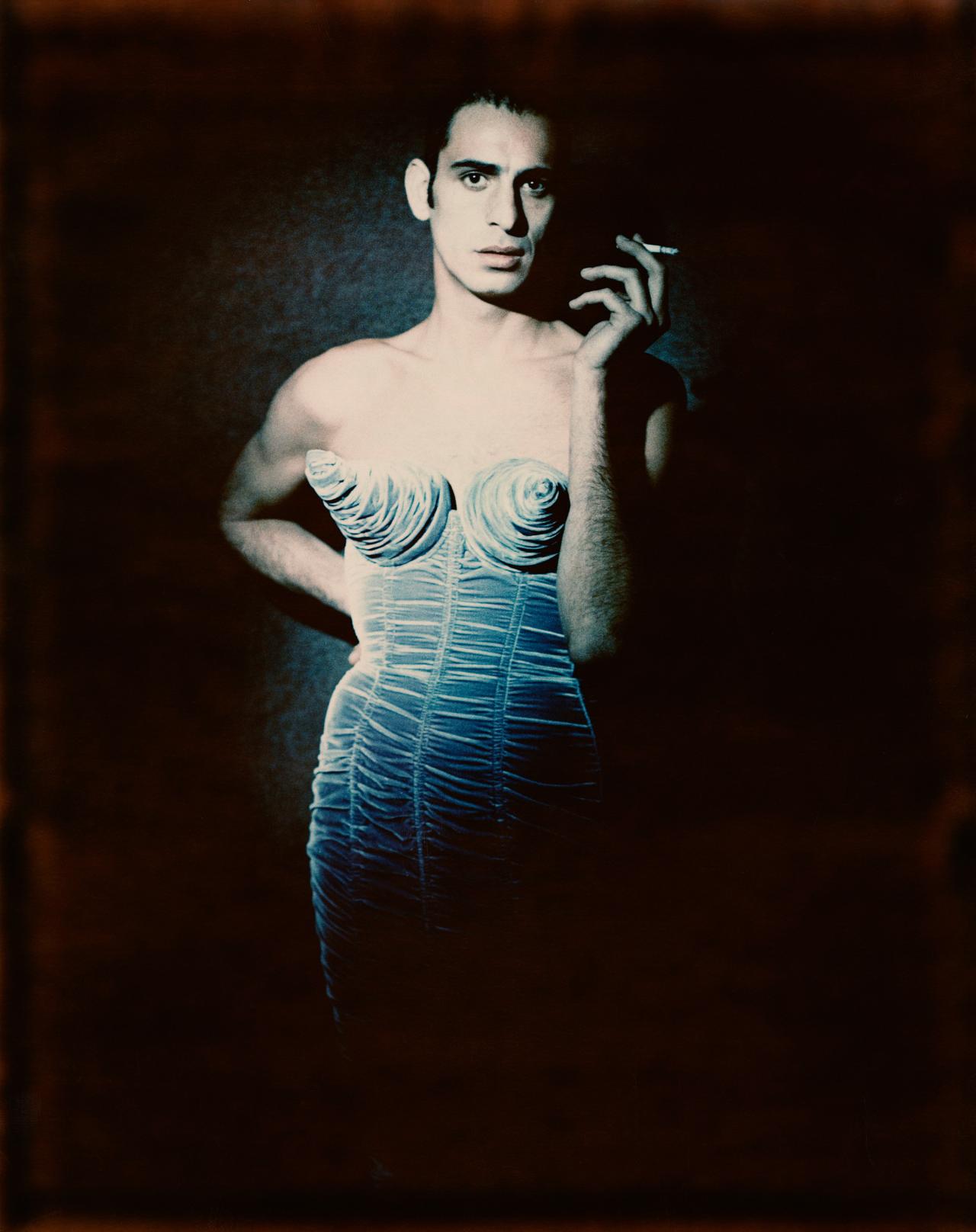 Gaultier designs the stage costumes for Madonna’s Blond Ambition World Tour. The photo-strip autobiography À Nous Deux la mode is published. Gaultier designs costumes for accordionist Yvette Horner’s show at the Casino de Paris.
