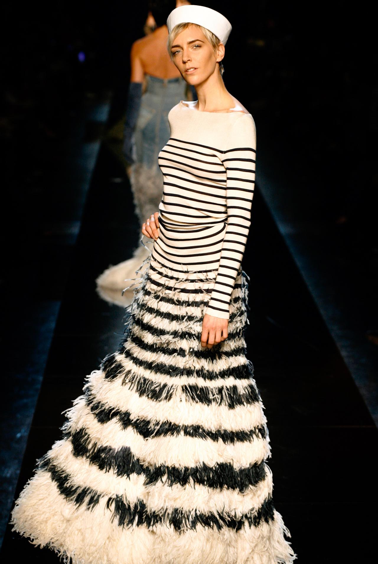 Gaultier designs the costumes for the “Geisha” and “Flamenco” segments of Madonna’s Drowned World Tour. He designs the costumes for the Gabriel Aghion film Absolutely Fabulous. Gaultier is named a Chevalier of the Order of the Legion of Honor.