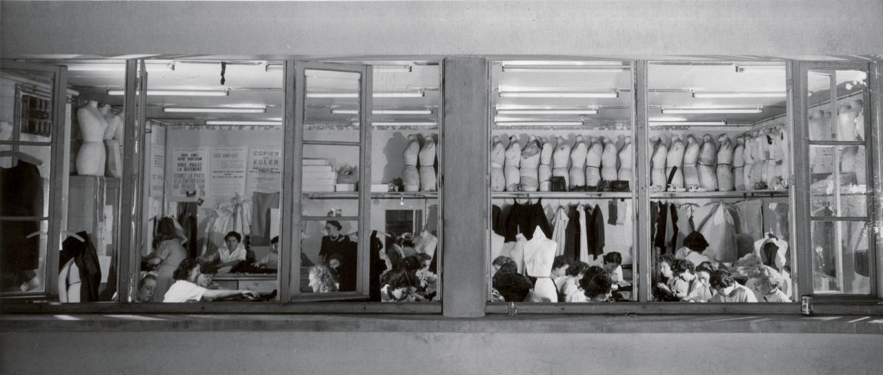 Haute couture is seen as fashion at its most brilliant and most brazen. Since 1946, the House of Dior has maintained specialist ateliers to execute its couture designs. Divided into two streams: flou (soft dressmaking) and tailleur (tailoring), each under the supervision of a première (head), the workrooms are home to exceptional craftsmanship. Housing different material and technical specialities, employees in the flou focus on drapery, typically working with fine wools, crepes, chiffons and silk, while those in the tailleur handle heavy or dense materials used for suiting or daywear. Sometimes, however, different parts of the one outfit are sent to different workrooms, as in the case of the famous Bar suit, 1947.