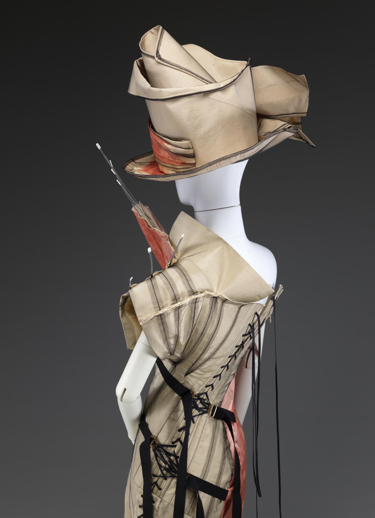 In 2017, to coincide with the NGV’s House of Dior: Seventy years of Haute Couture, two new couture works were commissioned for the fashion and textiles collection with funds donated by the David Richards Bequest and the F&T Supporters Group. The first, Look 10, Bar Coat, 2012, was from Raf Simons debut couture collection for Dior, the second, Essence d’Herbier, 2017, from Maria Grazia Chiuri’s first collection for the house. Joining a previous work, Look 39, 2002, by John Galliano, acquired in 2002 the two more recent examples show the ever-evolving design language of the house as envisaged by subsequent creative directors. As part of the acquisition process, documentary photography and film footage was taken in order to reveal some of the specialist techniques, tools and production methods specific to the making of couture garments and to give a behind-the-scenes-glimpse into the Dior ateliers.