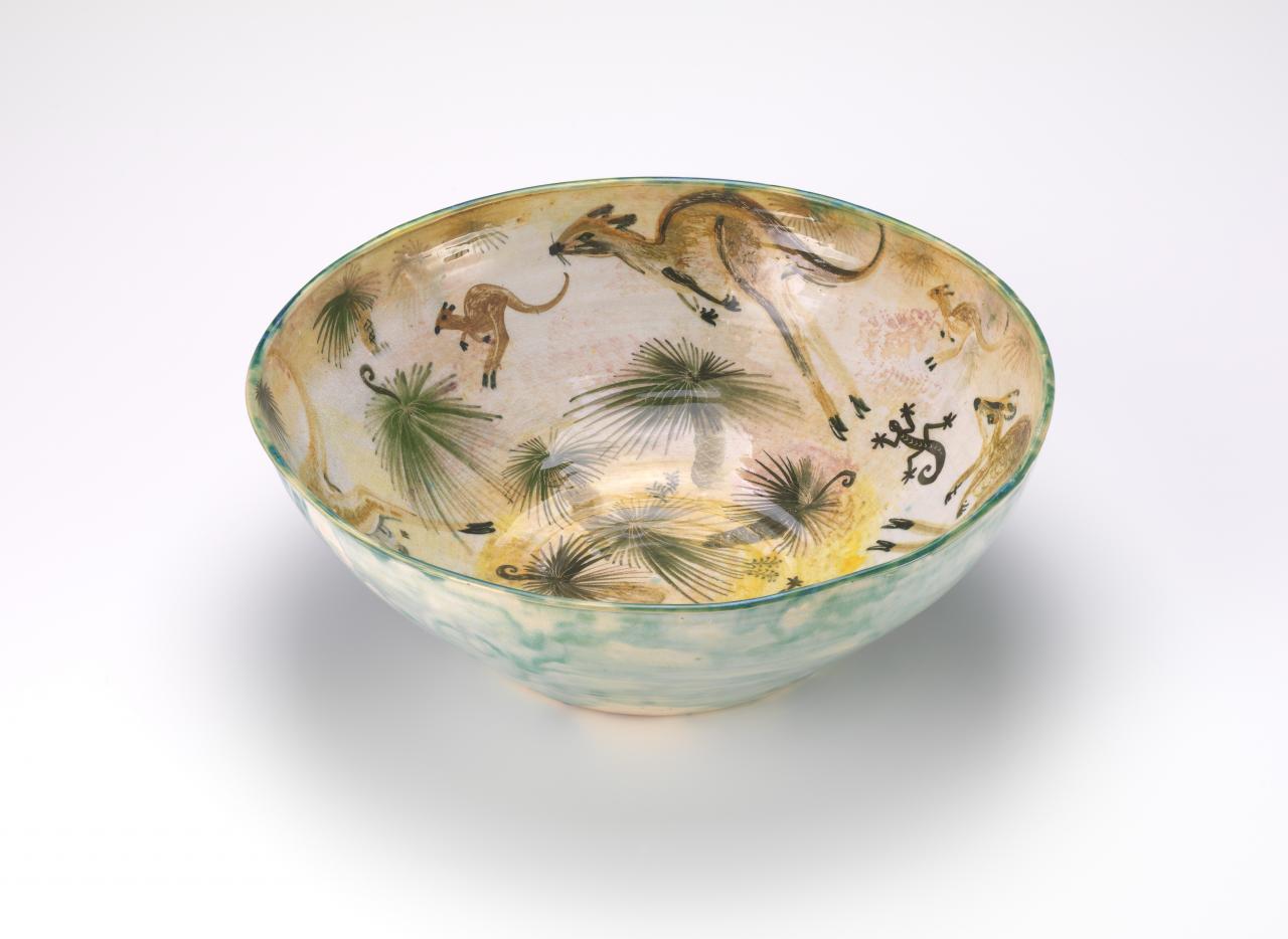 The Kangaroo in the Decorative Arts was an exhibition mounted in 1979 by Terence Lane, former Senior Curator of Australian Art, largely from his personal collection. Kangaroos were something of an obsession for Lane, who before his death in 2024 had amassed an eclectic collection that included some curious examples from Europe, the Philippines and Japan. Around 150 of these are now in the collection of the National Museum of Australia.