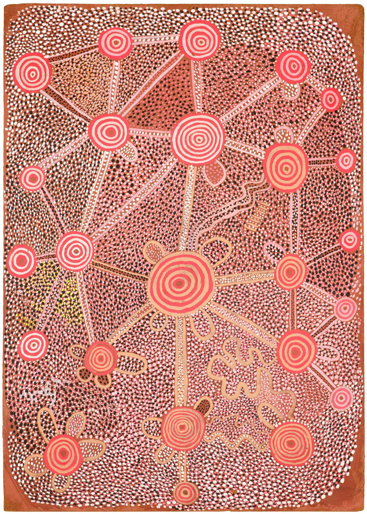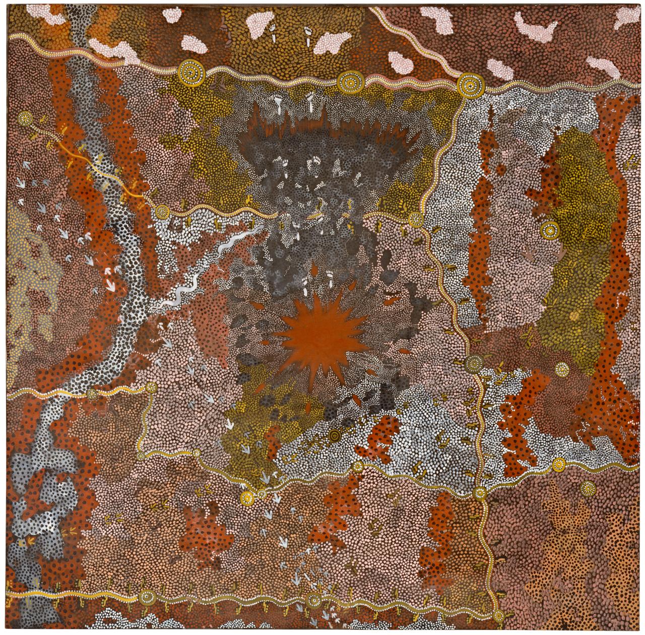 In 1988 one of Anatjari’s paintings was acquired by the Metropolitan Museum of Art from a group exhibition at John Weber Gallery in New York, where his first solo exhibition was held the following year.