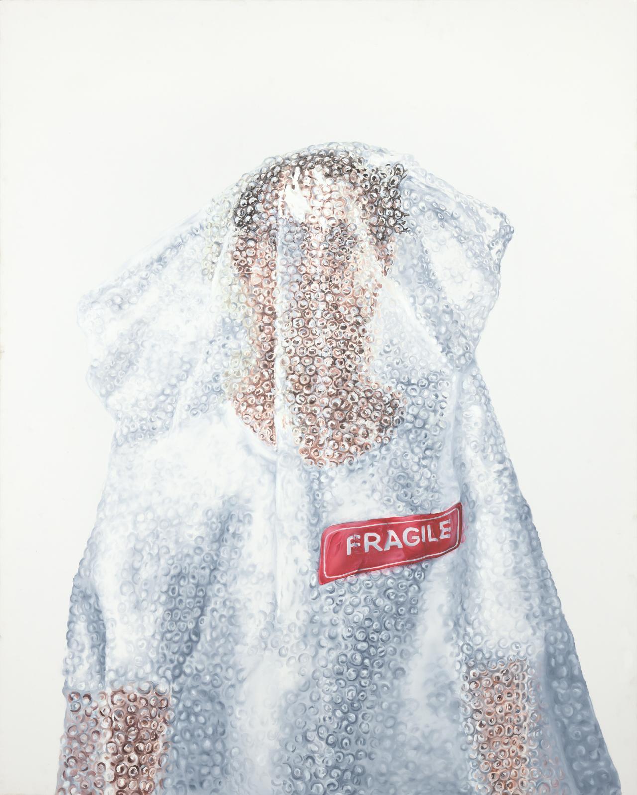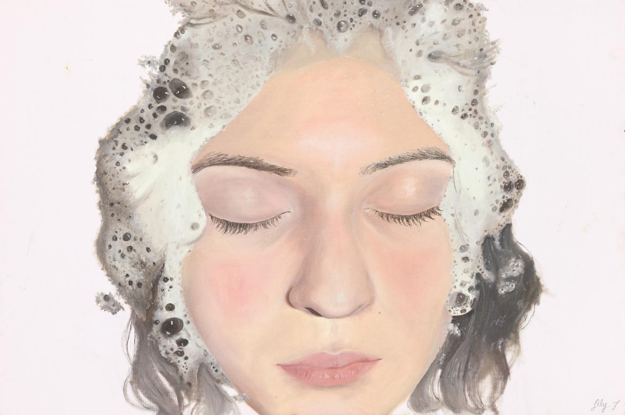 I first digitally manipulated my reference photo in Photoshop to create a grey-scale face, while the background remained saturated with colour. Then I transferred an outline of the figure onto the dibond panel using tracing paper. I followed the conventional oil painting process of ‘fat over lean’ by first laying down a highly diluted layer of oil paints mixed with Art Spectrum No.1 Medium to ‘map out’ my composition and tones. I gradually began to add more oil paint, slowly building up the realistic depiction of a figure. The flawless complexion was made through the technique of dry brushing. Once the paint had dried, I furthered the realistic depiction by adding in the small detailing such as highlights and darker shadows.