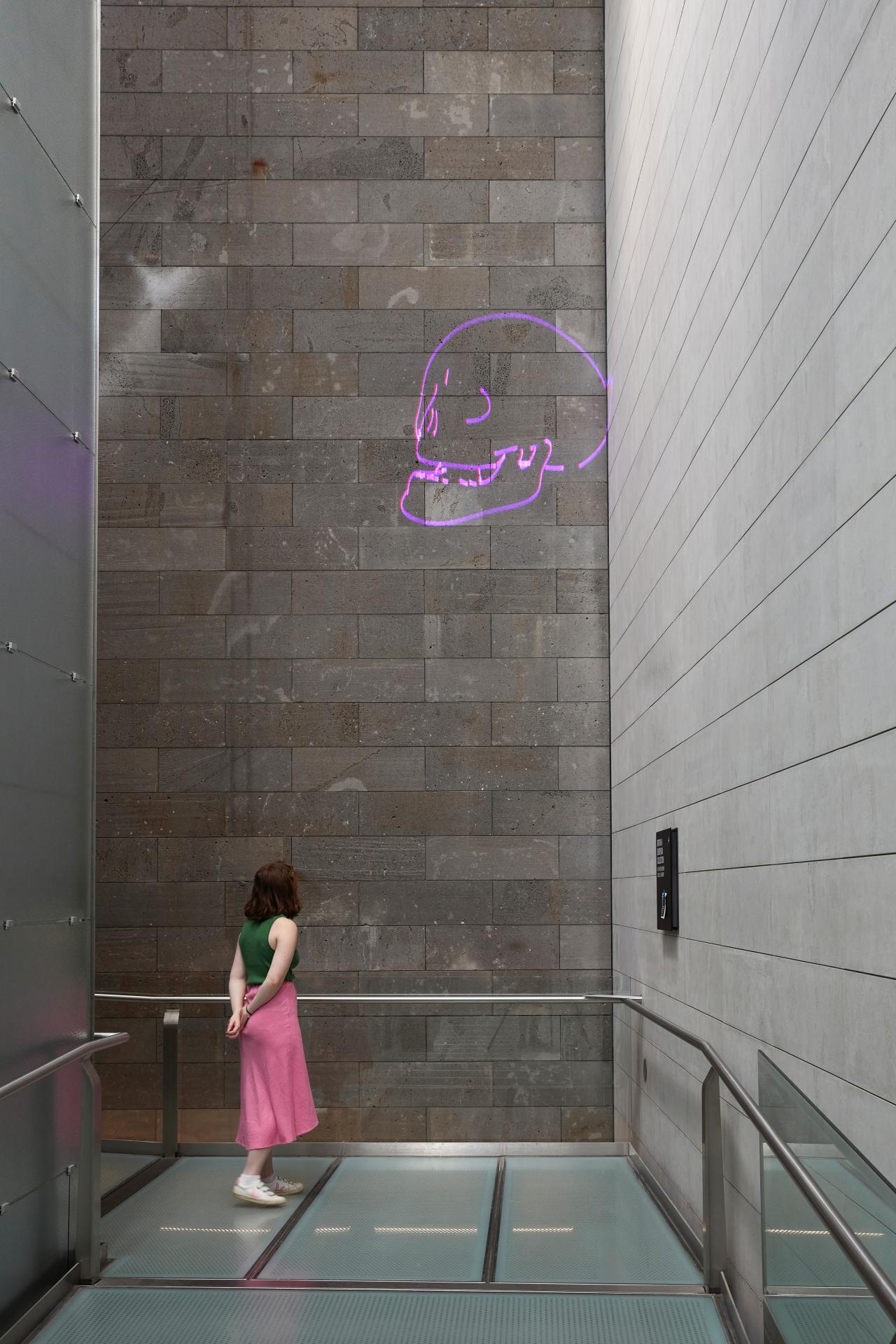 Cerith Wyn Evans’s C=O=D=A 2019–20 unfolds as a drawing in light, suspended in space. The work is regarded by the artist as a culmination of his suite of large neon ‘drawings’ that have explored the legacy of Noh Theatre. Comprising multiple elements, some busy and scribble-like, others diagrammatic – including references to the structural formulae for chemical compounds – the light sculpture will invite visitors to consider the relationships of each form to the next, as they move around the work and alter their perspectives. The work punctuates the visitor’s field of vision with rapid vectors, loops, straight lines, curves and complex geometric forms lit up in white neon.