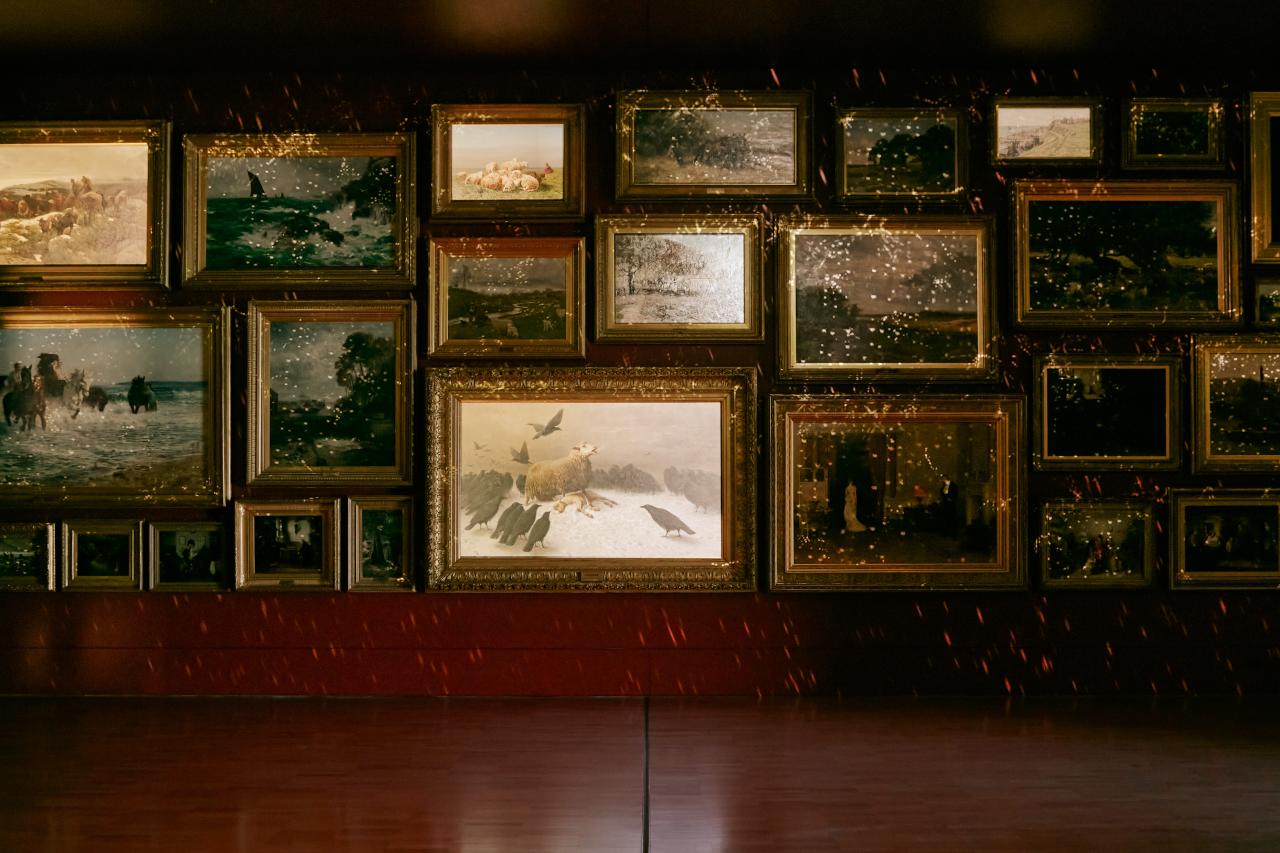 Downtime: Candlelight wall scenography and Family busts and Roly-poly chair / WaterLEVEL 2, GALLERIES 23 & 24