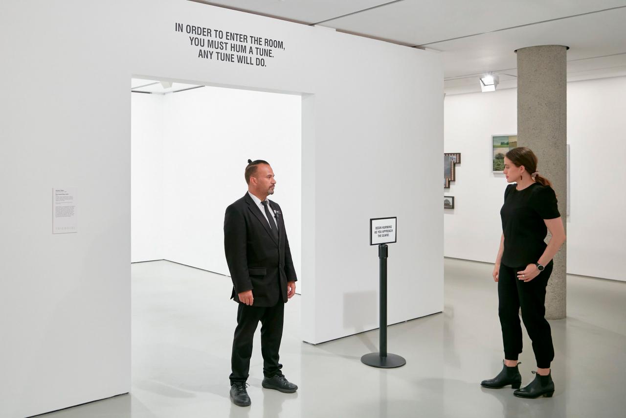 A second work by Arsham is also be featured in NGV Triennial. Falling clock 2020 is a new commission of one of the artist’s sculptures that incorporates a large scale clock, which can be used to tell the time and appears to fall into the white drapery on an otherwise featureless wall.