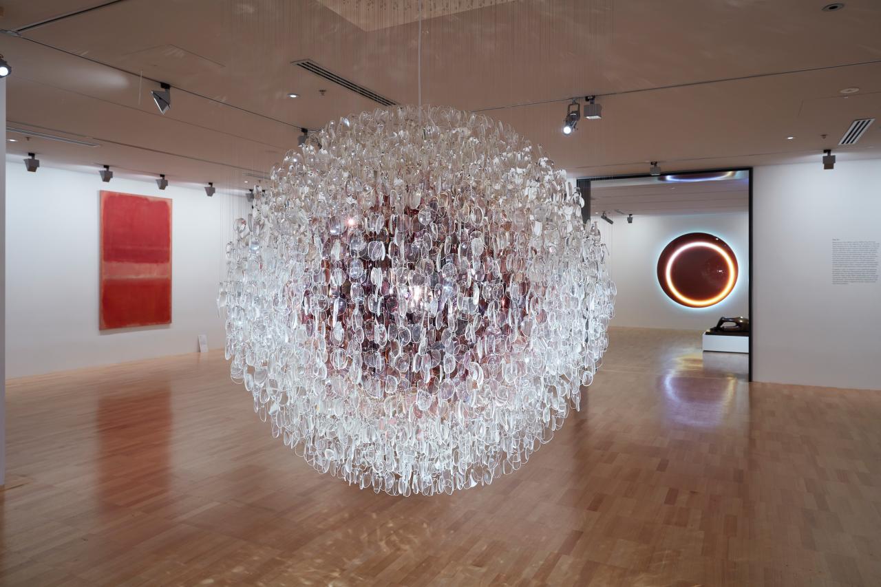 Presented in the 19th Century galleries Solaris 2020 is a mural-sized LED curtain screening a spectacular, luminous ecosystem populated with blooms of jellyfish. Created with a computer program commonly used in video game platforms, the screening presents a digital simulation of a unique marine environment – a landlocked body of salt and rainwater formed over 11,000 years ago, located off the coast of Kalimantan, Indonesia. Predator-free and able to thrive in warm waters, these jellyfish species have evolved differently, providing scientific communities with a living laboratory for studying the potential effects climate change may have on marine systems.