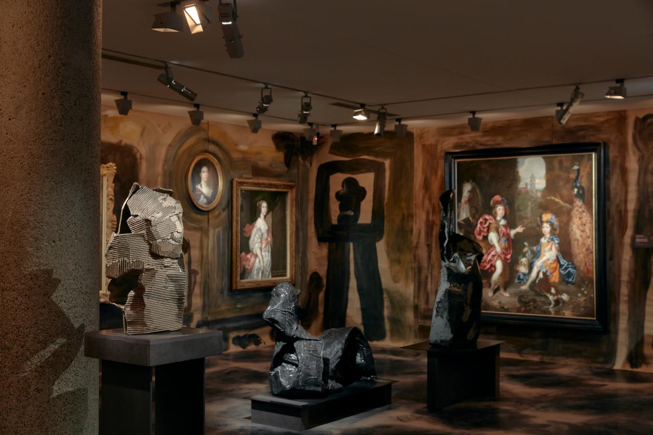 Downtime: Candlelight wall scenography and Family busts and Roly-poly chair / WaterLEVEL 2, GALLERIES 23 & 24