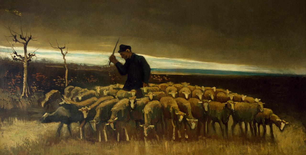 His oeuvre contains depictions of the seasons not only in the form of landscapes representing spring, summer, autumn or winter but also portrayals of people engaged in seasonal work, such as reaping the wheat (summer), sowing a crop and harvesting the grapes (autumn) and gathering wood in the snow (winter). Still lifes by Van Gogh are also often clearly connected with particular seasons, not only his flower still lifes of spring or summer bouquets but also compositions featuring the bounty of the autumn harvest, including potatoes, apples and pumpkins – works that can justifiably be described as rural still lifes. He constantly found inspiration for these subjects in visual art and literature as well as in nature itself.