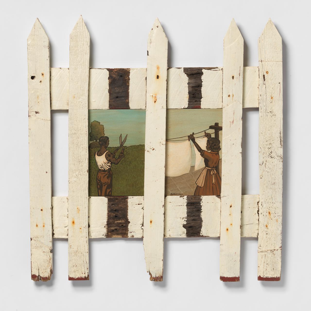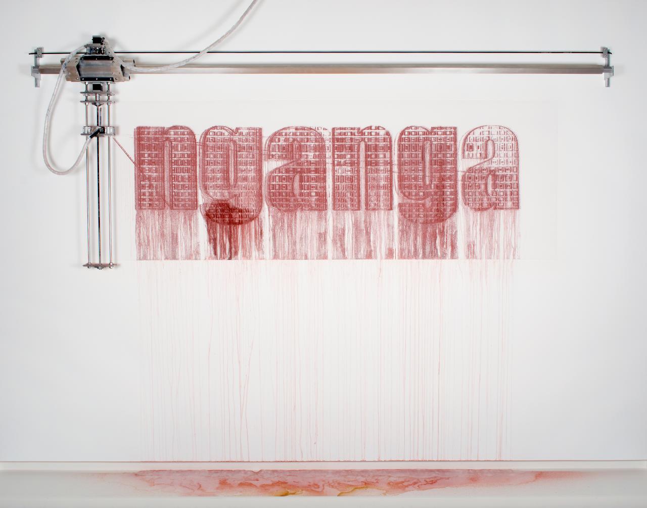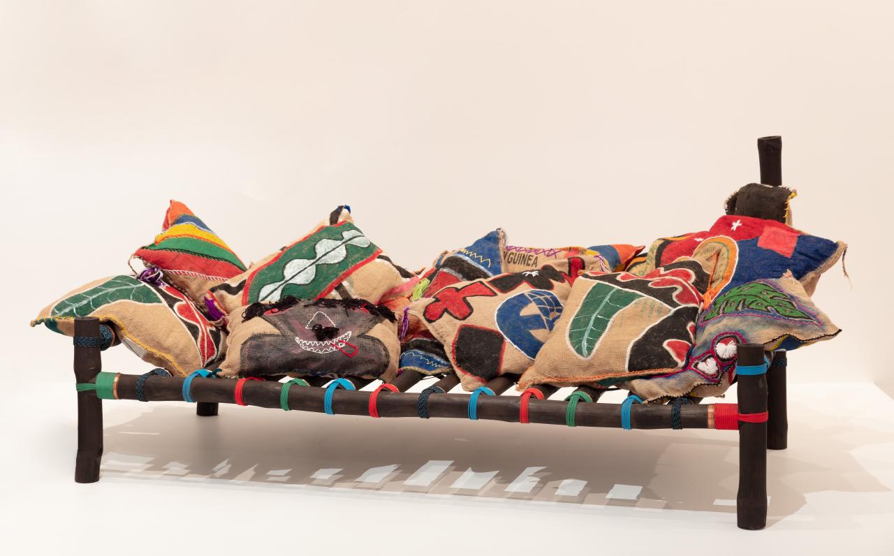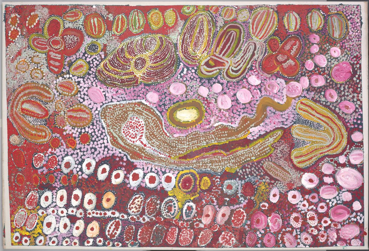 These three wire bags produced in 2013 were displayed for the first time at the NGV for the exhibition Melbourne Now. Each sculpture is made from coiled fencing wire and has been supersized, reflecting the scale of destruction that followed post- European arrival in Australia. In an interview from 2014, Connelly-Northey described her process and reflections when working with this material, saying: ‘I thought about how this fencing wire was where my mum was living, on missions and reserves and how wire was used to keep mum in, like sheep in a paddock, but also to keep her out of her traditional Country, to go and hunt and gather, and those kind of things’.