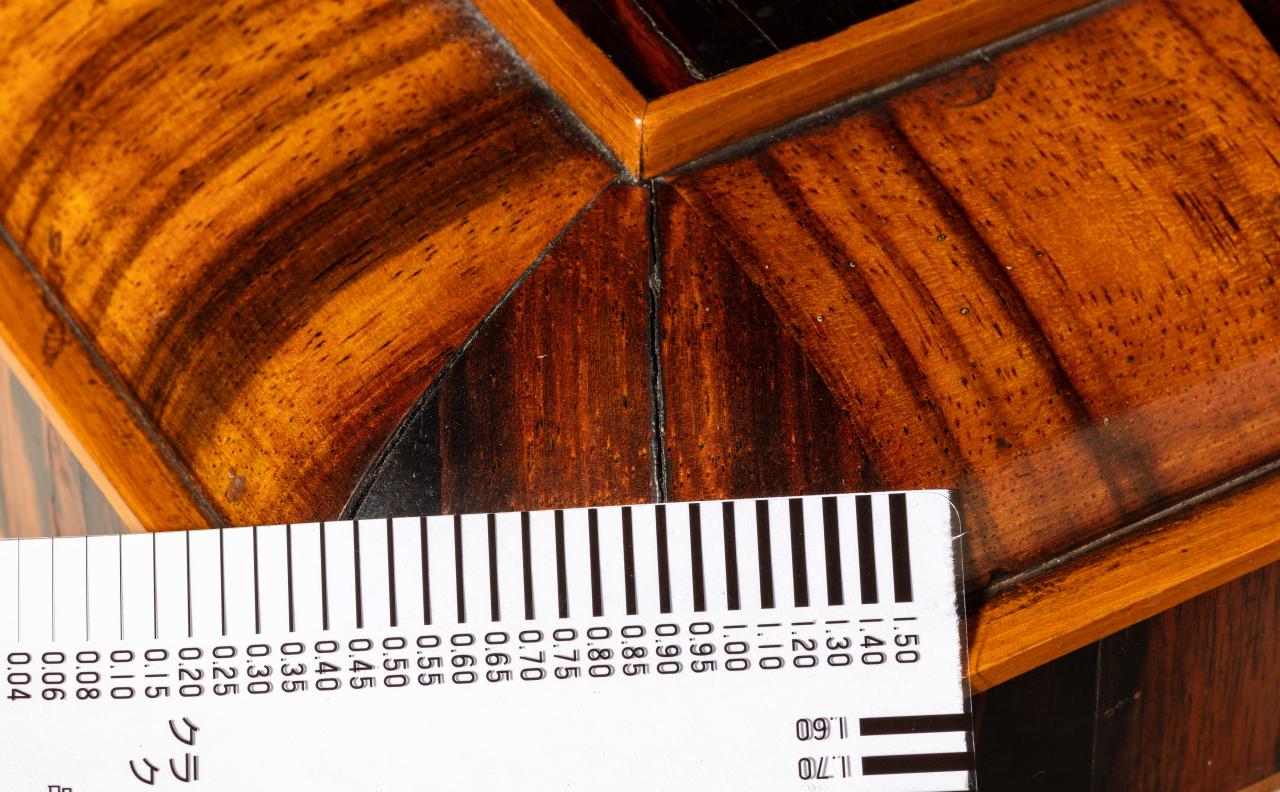 Conservation of the NGV Collection requires a multi-pronged approach from tailored care for individual artworks to large-scale measures, such as controlling the gallery environment, to enhance the longevity of the entire Collection. The NGV Collection includes artworks made from a range of materials including furniture and frames with inlaid and veneered decoration, illuminated manuscripts on parchment, early colour photographs, silk textiles, polychrome wood sculptures and paintings on bark. These works all respond to Relative Humidity (RH)The amount of water vapour in the air as a percentage of the maximum amount possible at that temperature. The higher the temperature, the more water vapour the air can potentially contain. and temperature (T) and exposure to visible and ultraviolet (UV) light.