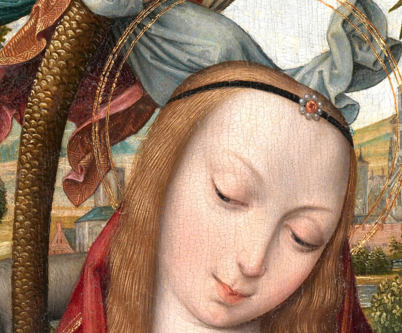 Detail of Triptych with the miracles of Christ (1247-3) (left) with RTI image showing surface texture, providing a record of condition (right)