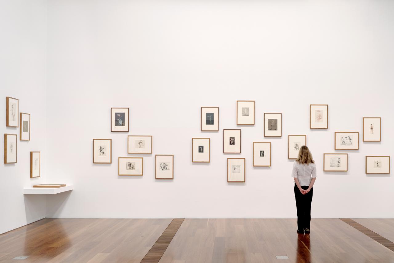 Conservators’ first strategy in protecting the NGVs collection from light is to eliminate UV and IR where possible. The NGV uses filters on windows, display cases and glazing, and use specialised lighting design to illuminate our galleries. The amount of light shone on an artwork is measured and tracked to ensure optimal visibility in conjunction with safe levels of exposure. Displays of light-sensitive artworks are regularly rotated to minimise overall exposure and artworks are methodically assessed for signs of light damage or change by conservators.