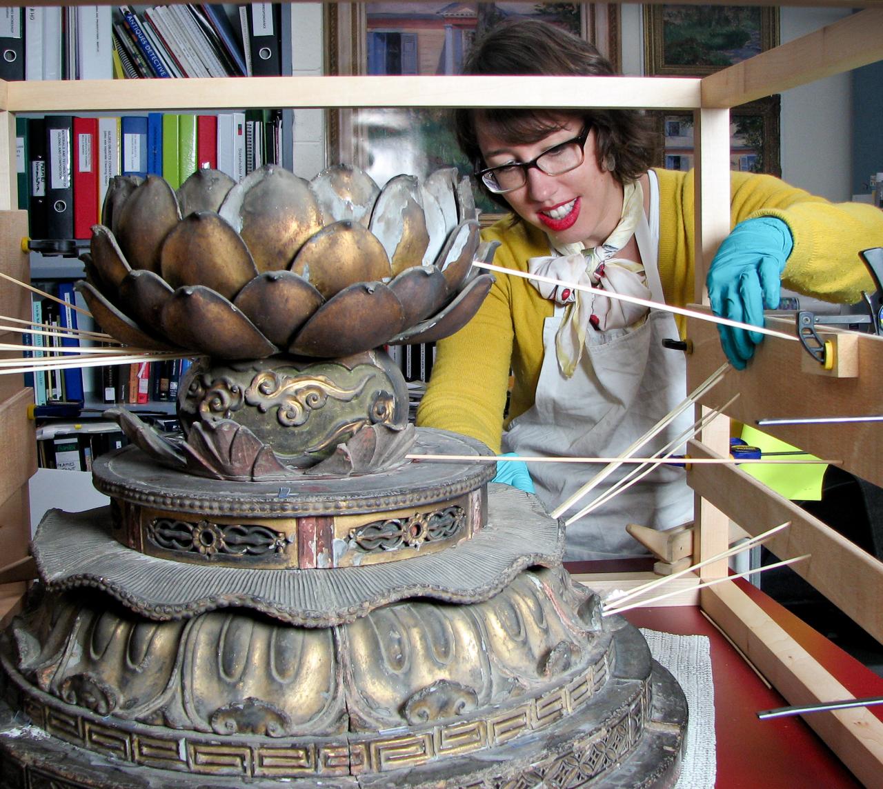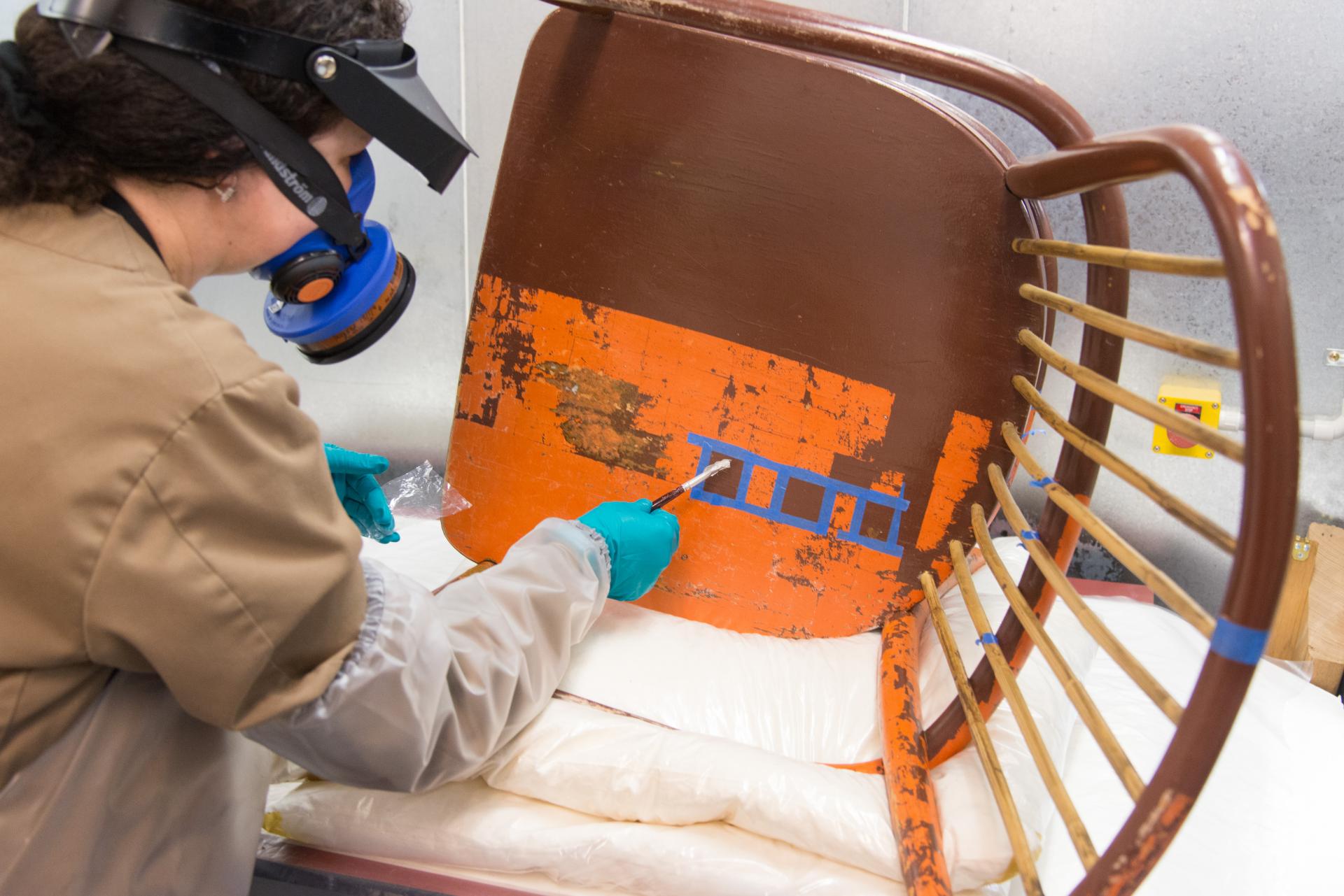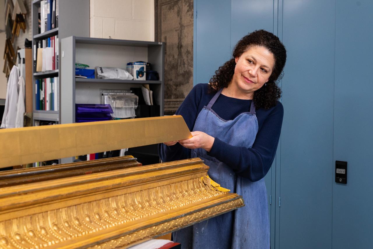 The Frames and Furniture Conservation section conserves picture frames and furniture in the collection, as well as Asian lacquer and related works of contemporary art and design. Another area of focus is reproduction frame making based on historical research, technical examination and traditional woodworking, ornamentation and gilding. As works of decorative art and design, a distinctive aspect for both frames and furniture is their functional nature, which impacts treatment and preservation strategies. Frames continue to remain functional as protective and visual borders for the works within them. Most furniture is no longer used in a functional sense once part of the collection, with the exception of lamps and other light fixtures that are often displayed illuminated following appropriate testing and preparation.