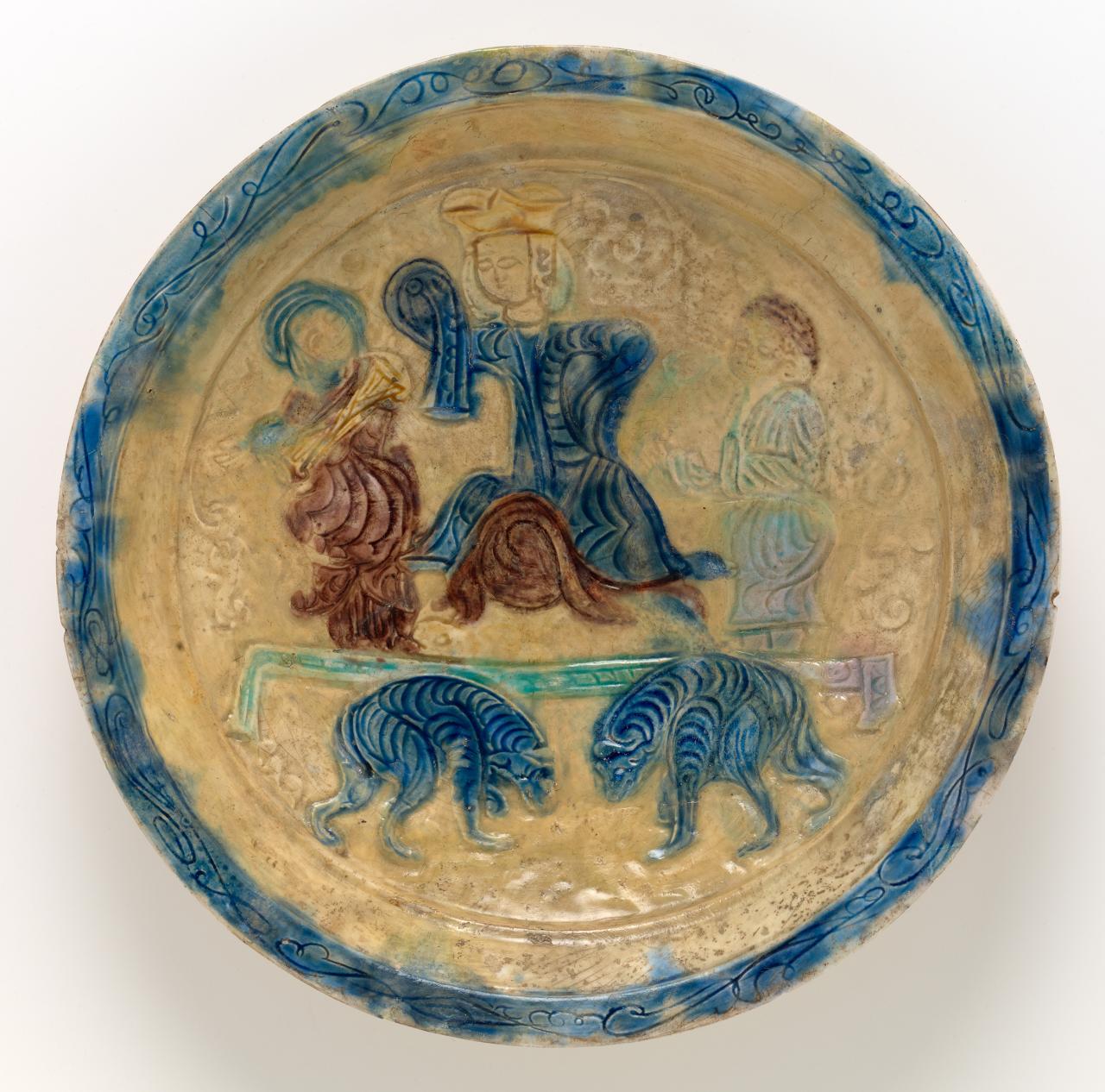 X-radiography uses x-rays (x-radiation) to reveal details of an object’s structure and composition. The degree in which X-rays penetrate through different materials is visually represented in an x-radiograph. This example of an x-radiograph was taken of a Persian dish from the 12th century. It immediately shows the numerous pieces that have been adhered together to reassemble the plate. The lighter sections are infills where missing pieces have been recreated.