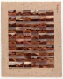 collage of type C photographs and gold embossing tape on brown handmade mulberry paper