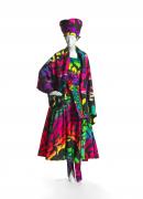 (d) label, centre front, woven black and multicolour on polyester: Linda Jackson / BUSH COUTURE / AUSTRALIA