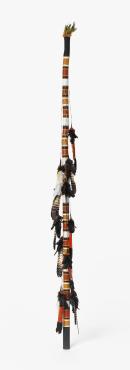 earth pigments and synthetic polymer paint on Hibiscus (Hibiscus sp.), feathers, bush string