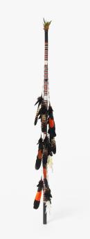 earth pigments and synthetic polymer paint on Hibiscus (Hibiscus sp.), feathers, bush string