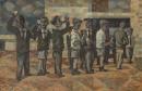 Between 1957 and 1965, National Gallery School alumnus Douglas Green worked part-time as a high school art teacher at Bonbeach High near Frankston. The schoolyard is based on sketches he made during this time and depicts a queue of schoolboys drinking bottles of milk likely provided by the state government’s free milk program of the 1950s. A study of childhood and school life, the painting also reveals Green’s interest in geometry and composition. Angular, fragmented forms in muted tones are used to articulate the scene; the surfaces of the schoolyard, buildings and uniformed figures vibrating against each other.