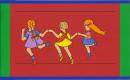 children (people by age group) costume (mode of fashion) full-length figures girls lines (artistic concept) rectangles sisters (siblings) skipping