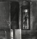 Fiona Hall began focusing on photography in the mid 1970s, following her time as an assistant to British landscape photographer Fay Godwin. Taken with a large-format camera, Hall’s early photographs were influenced by late modernism and formalism, the study of art focusing on the visual aspects of a work. In this image, Hall plays with forms and lines, capturing the elements of the room as if they have been layered, and she positions herself so that her reflection appears as though it is hovering in space. Curator and art historian Helen Ennis writes that while we often expect self-portraiture to reveal the artist, Hall’s photograph seems to conceal her.