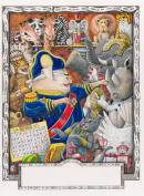 watercolour, gouache, coloured pencil, pencil and pen and ink