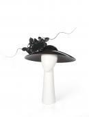 acrylic, sinamay, patent leather, metal, polyester (lining)